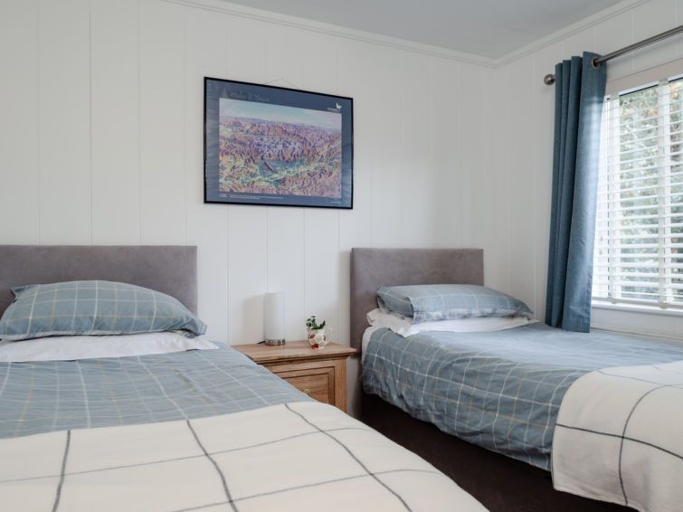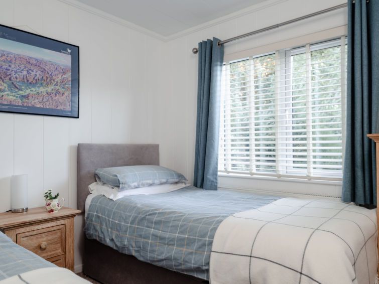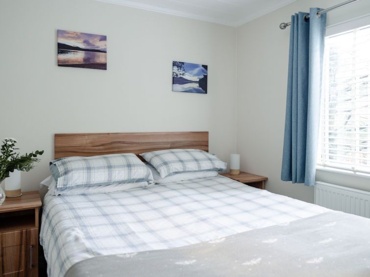 3-room chalet. Spacious and bright, tasteful and cosy furnishings: open living/dining room with dining table and TV (flat screen). Exit to the patio. 1 room with 1 double bed (1 x 135 cm, length 190 cm), shower/WC. 1 room with 2 beds (90 cm, length 190 cm). Open kitchen (oven, 4 gas rings, toaster, kettle, microwave, grill).