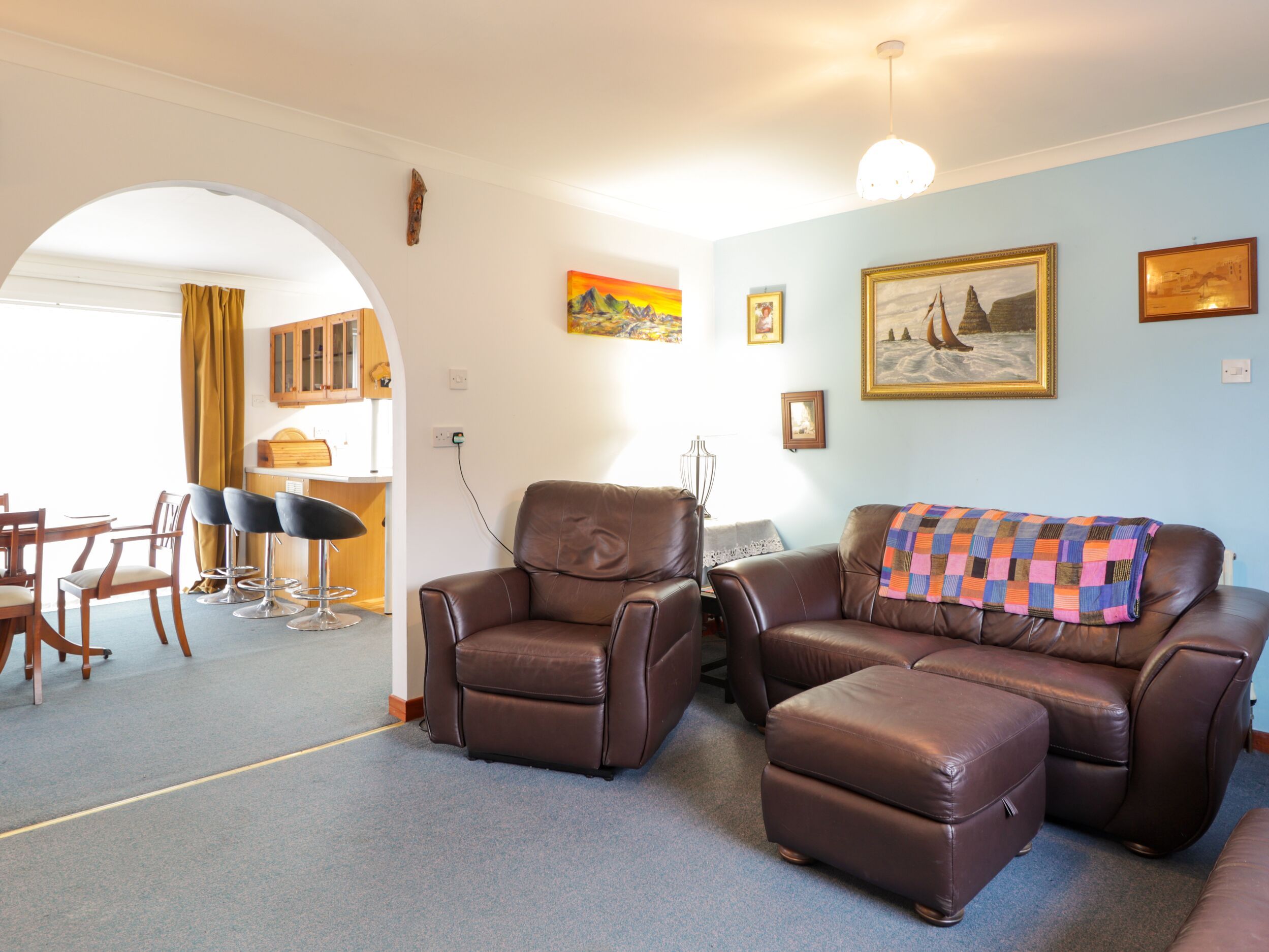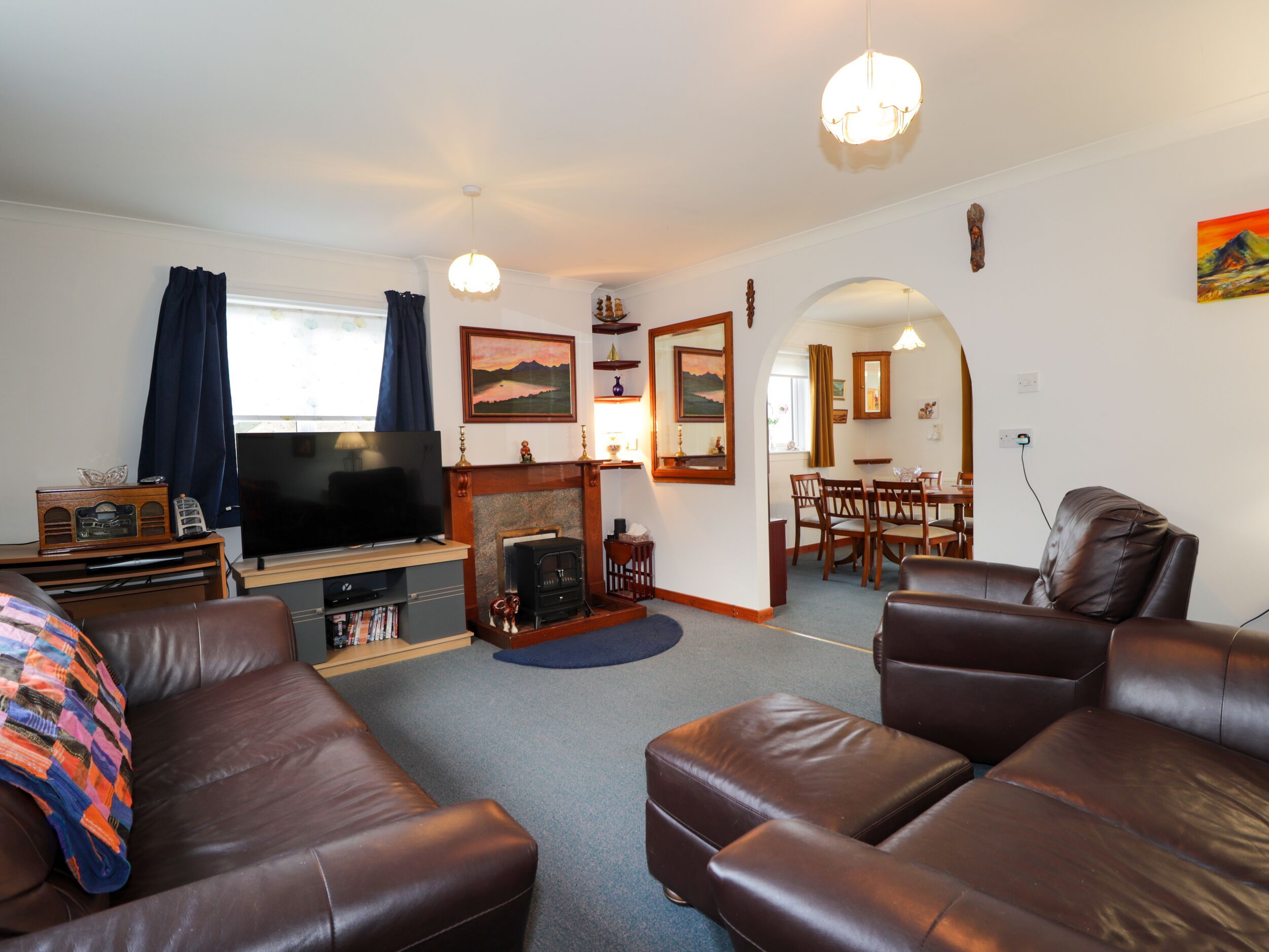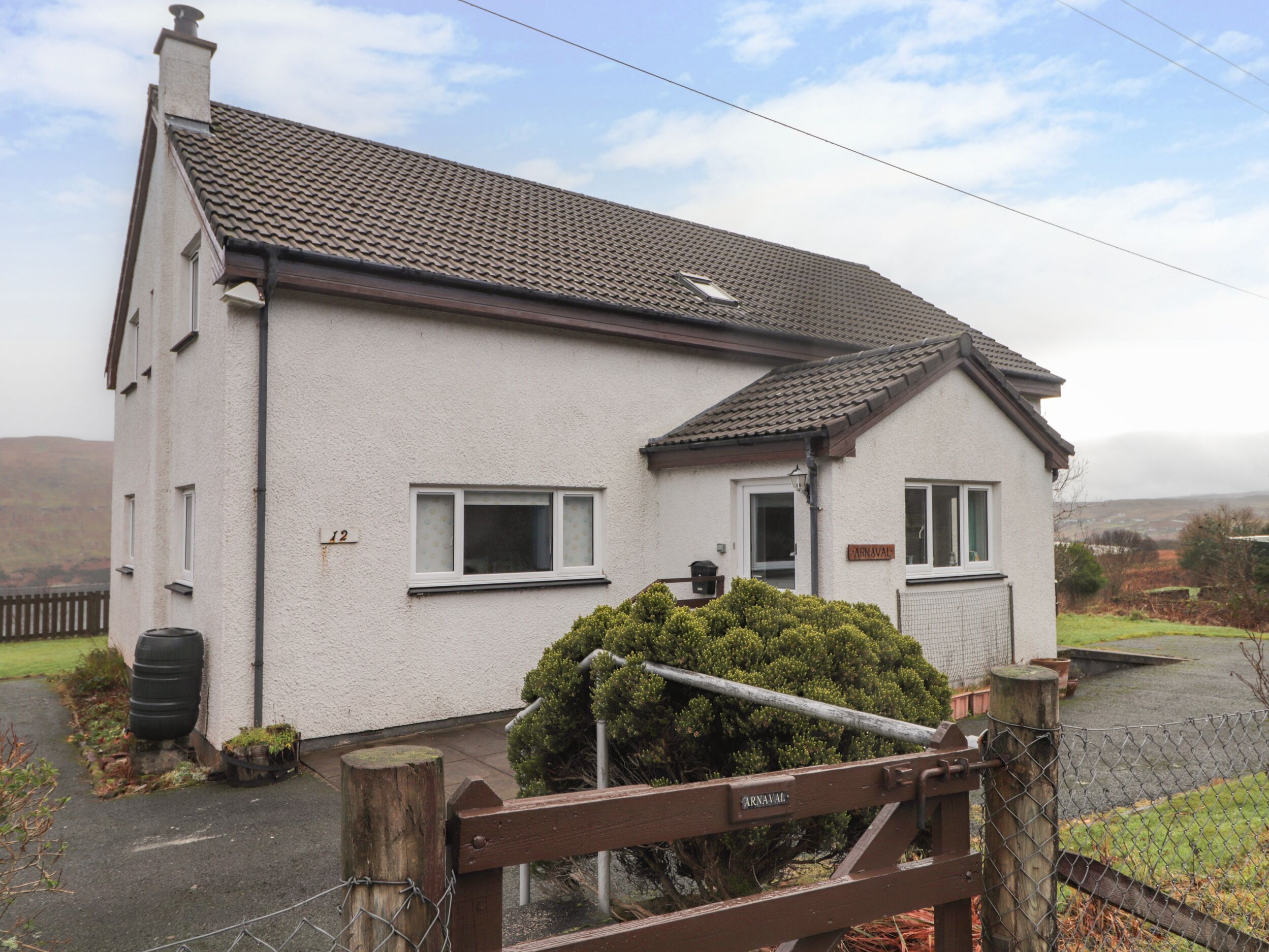 Holiday home Arnaval consists of a kitchen with an electric oven and hob, microwave, washing machine, tumble dryer, a dining area seating seven guests, a utility with a fridge, fridge/freezer, a sitting room with a Smart TV and electric fire and a snug. The bedrooms consist of a family room with Jack-and-Jill access to a bathroom, a ground-floor double with en-suite, and a double serviced by a ground-floor shower room and a Jack-and-Jill Bathroom. Outside, there is an enclosed rear garden with lawn, patio and furniture and off-road parking for 4 cars. Within 1.9 miles, you will find a shop, within 1.8, a pub, and within 0.2 miles a lake. Two well-behaved pets allowed, however, please note that this is a non-smoking property. WiFi, fuel, power, bed linen and towels are all included in the price. Arnaval is a practical base with stunning views in Carbost. Note: The house has nearby streams, the garden is not fence-proof, children and animals should be supervised at all times so they do not escape. Note: If the child is more than 2 years old, it counts in total guests' occupancy.