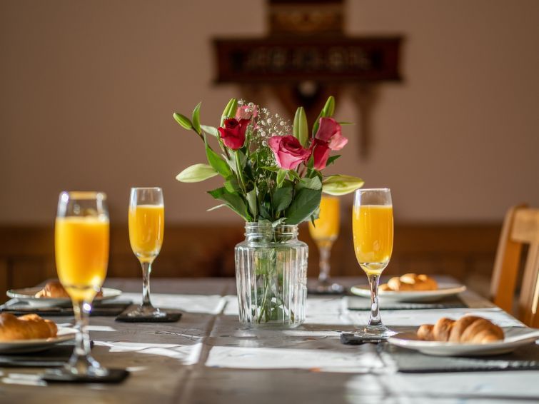 5-room house on 3 levels. Spacious and bright, tasteful and stylish furnishings: large living room with TV (flat screen), wood-burning stove. Exit to the terrace. Dining room with dining table. Large kitchen (oven, dishwasher, 4 induction hot plates, toaster, kettle, microwave, freezer, grill, electric coffee machine) with dining table.