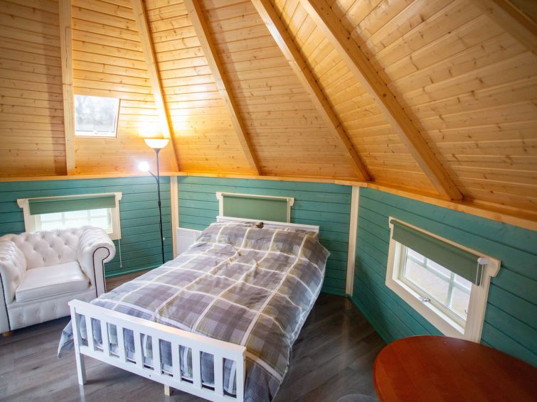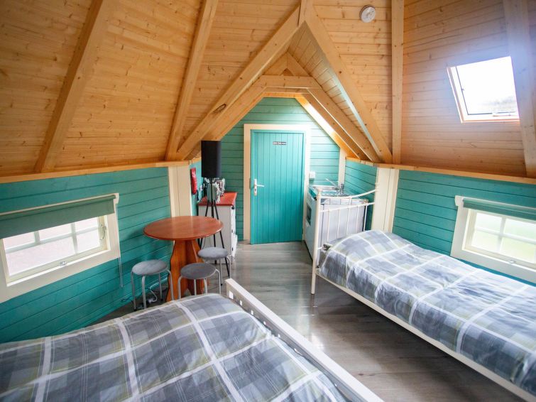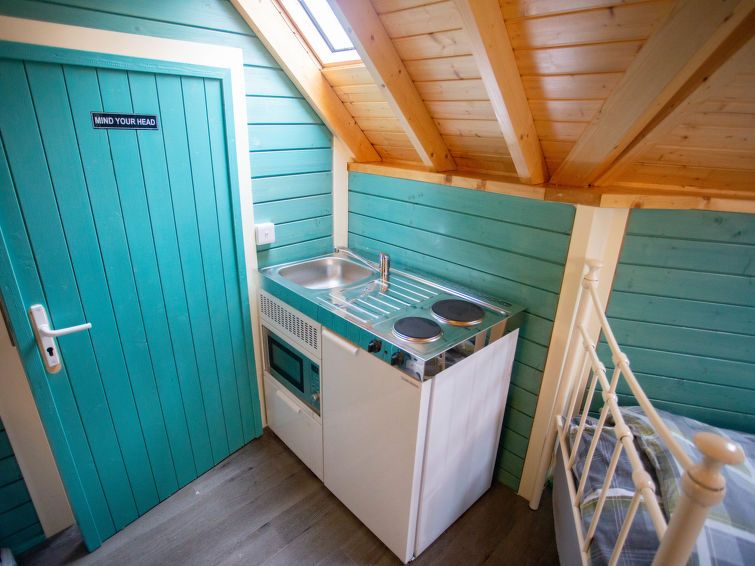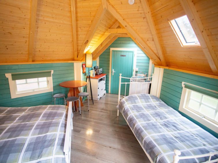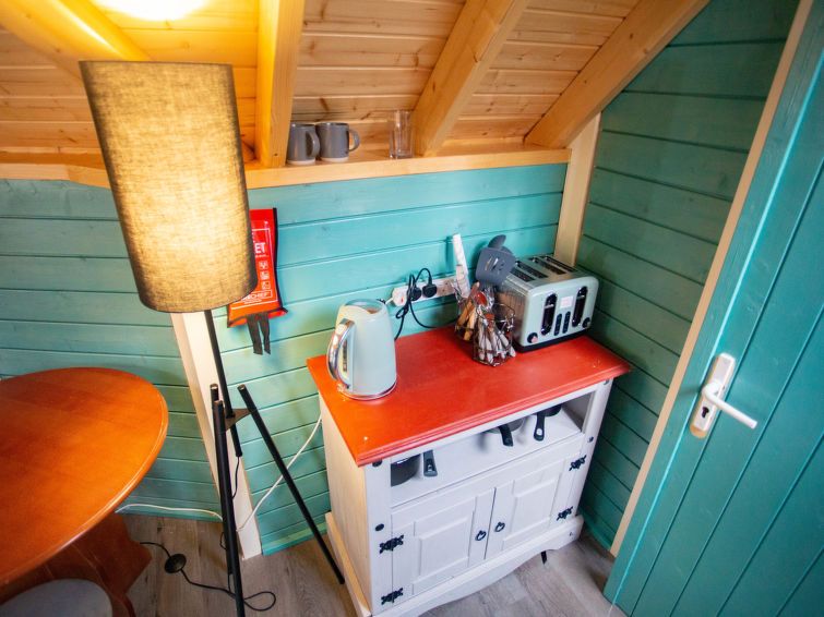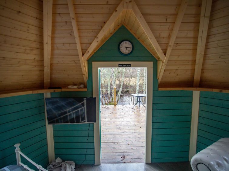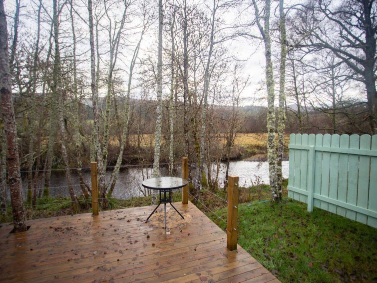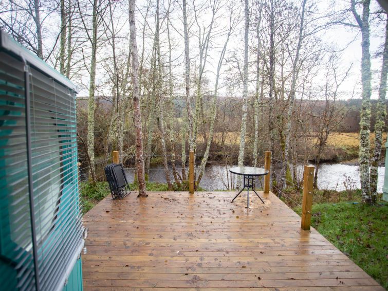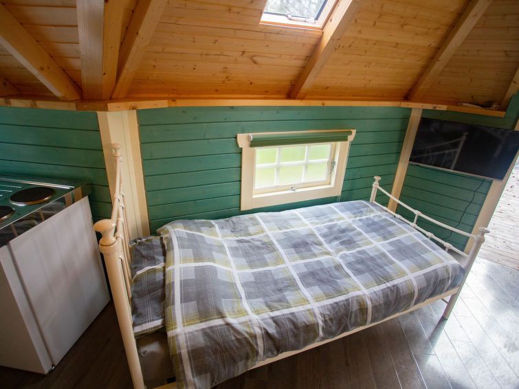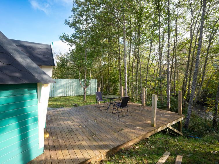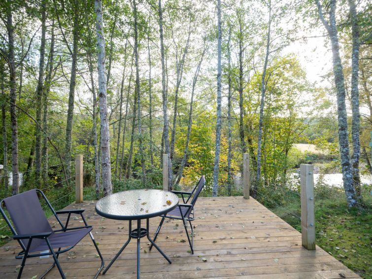 "Glen", 1-room chalet on the ground floor. Comfortable and modern furnishings: open living/dining room with 1 bed, 1 double bed, dining table, shower/WC and TV (flat screen). Exit to the veranda. Kitchenette (2 hot plates, kettle, microwave). Small patio. Terrace furniture. Beautiful view of the river.