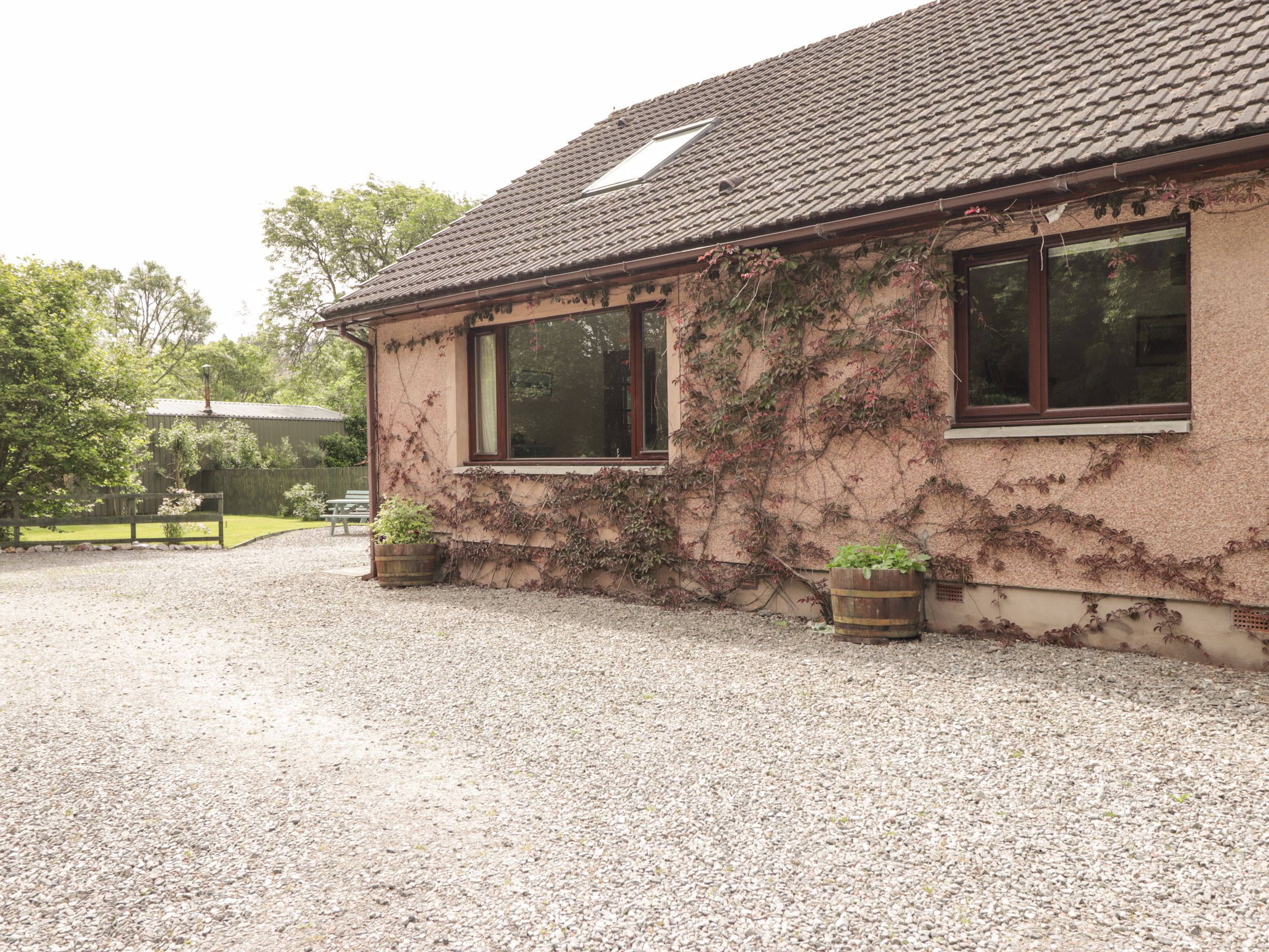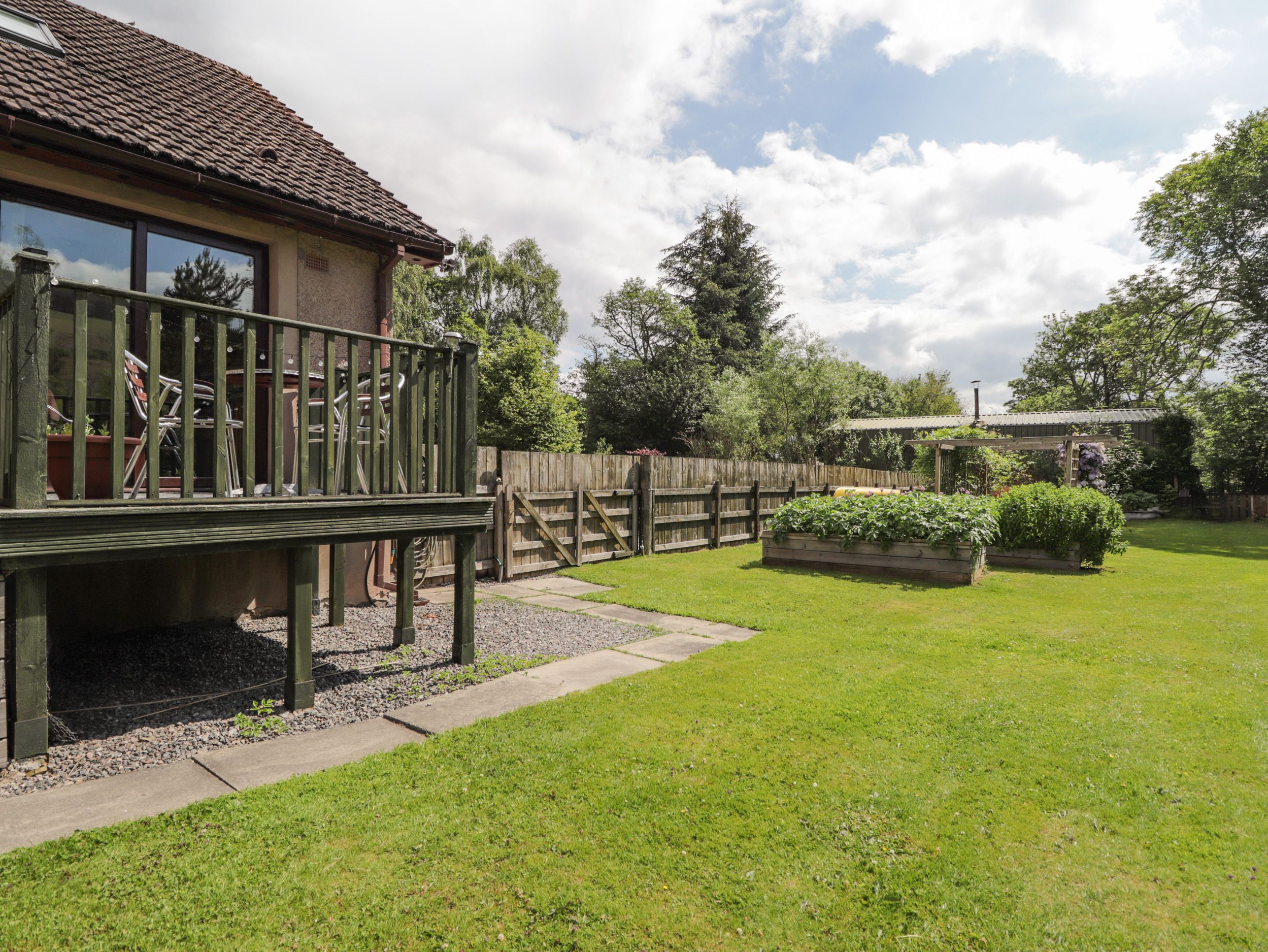 Holiday home The living areas in the property consist of a kitchen/diner with an electric oven and ceramic hob, grill, microwave, fridge, freezer and washing machine, dining seating for four people, a decked balcony with seating and a sitting room with Smart TV and a selection of books. There is a king-size bedroom with en-suite cloakroom and a ground-floor bathroom. Outside there is a side garden with lawn and seating, rear enclosed garden with lawn and stream and ample off-road parking for up to four cars. Within 1.1 miles, you will find a shop, and within 1.7 miles, a pub, and please note that this is a non-smoking property. WiFi, fuel, power, bed linen and towels are all included in the price. The property is accessed via four steps, please take care. The property is attached to the owner’s home. Infants are accepted on request. Escape to the Highlands with an idyllic getaway to Iola. Note: Owner will only accept 7 night bookings from a Saturday