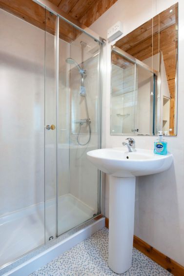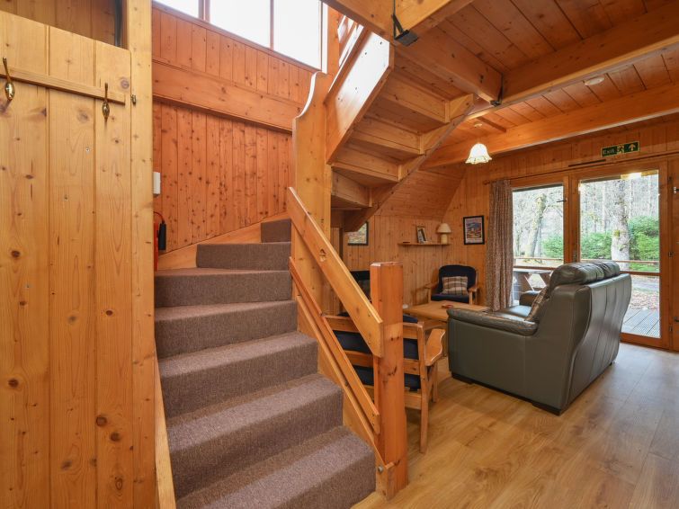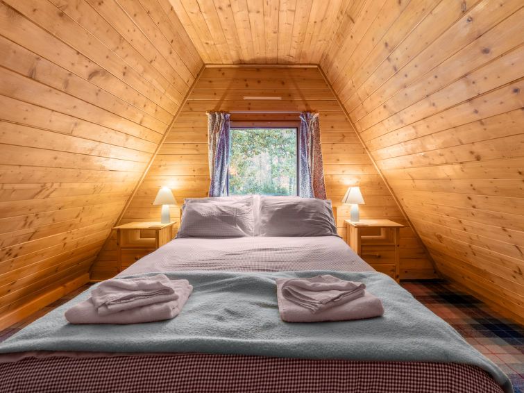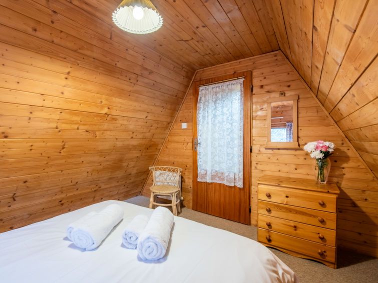 3-room chalet on 2 levels. Spacious and bright, comfortable and cosy furnishings: living/dining room with satellite TV, video, radio and CD-player. Exit to the veranda. Small kitchen (4 hot plates, oven, microwave, freezer, grill). Shower/WC. Heating. Upper floor: 1 room with 1 double bed.