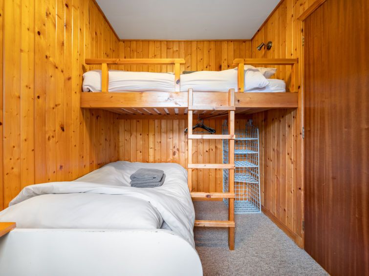 4-room chalet 70 m2. Simple and cosy furnishings: open living/dining room with dining table and TV (flat screen), DVD. 1 double bedroom with 1 double bed. 1 double bedroom with 2 beds. 1 room with 1 x 2 bunk beds. Open kitchen (4 hot plates, oven, microwave). Bath/shower/WC. Electric heating.