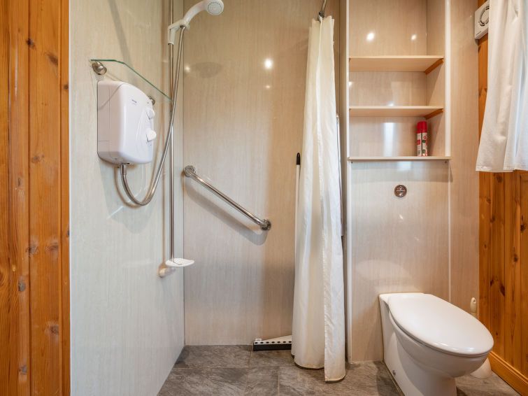 3-room chalet 70 m2. Simple and cosy furnishings: open living/dining room with dining table and TV (flat screen), DVD. 1 double bedroom with 1 double bed. 1 double bedroom with 2 beds. Open kitchen (4 hot plates, oven, microwave). Shower/WC. Electric heating. Facilities: washing machine, children's high chair, baby cot for up to 2 year olds (extra).