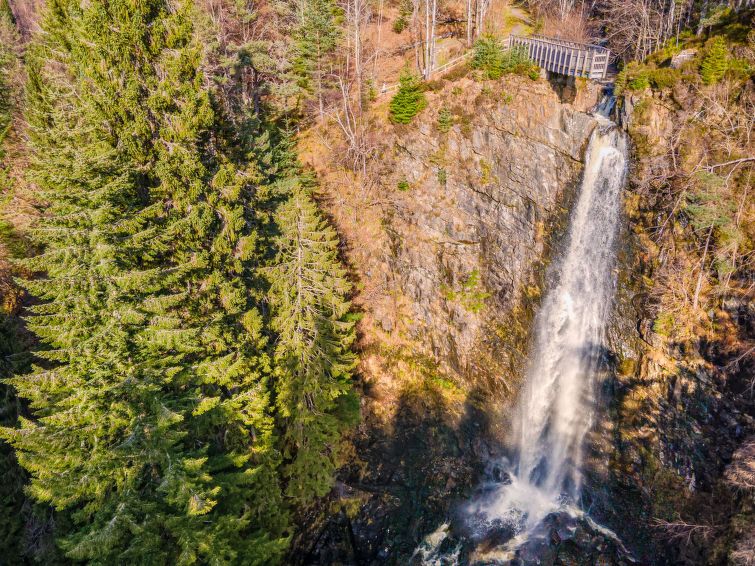 4-room farmhouse on 2 levels. Spacious, comfortable furnishings: large living/dining room with dining table, flat screen and wood-burning stove. Exit to the garden, to the terrace. 1 double bedroom with 1 double bed and shower/WC. Large, open kitchen (oven, dishwasher, 4 ceramic glass hob hotplates, microwave, freezer).