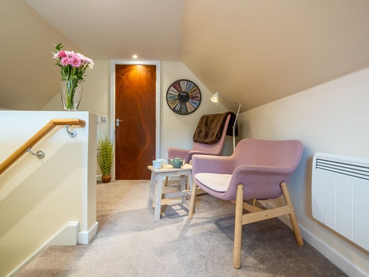 2-room studio on 2 levels. Object suitable for 2 adults. Modern and tasteful furnishings: dining room with dining table. Upper floor: open sleeping alcove with 1 double bed and shower/WC. Garden. Terrace furniture, barbecue. Facilities: Internet (WiFi, free). Parking at the house.