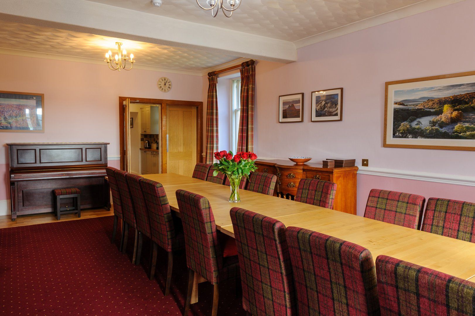 Alvey House was the perfect venue for a weekend away for our party of 7 couples.. Each couple had a very comfortable room with their own ensuite bathroom.The whole house was spotless clean from top to bottom, and the views of the Cairngorm mountains from the front of the house are simply stunning. The house has plenty of room for entertaining, whether it be in the lounge with the open fire, or the huge dining room with a table which easily accommodated our party of 14. With a 5min walk from the town all hotels/pubs and shops are within easy reach. All in all, we had a fantastic weekend and are hoping to make a return visit next year.