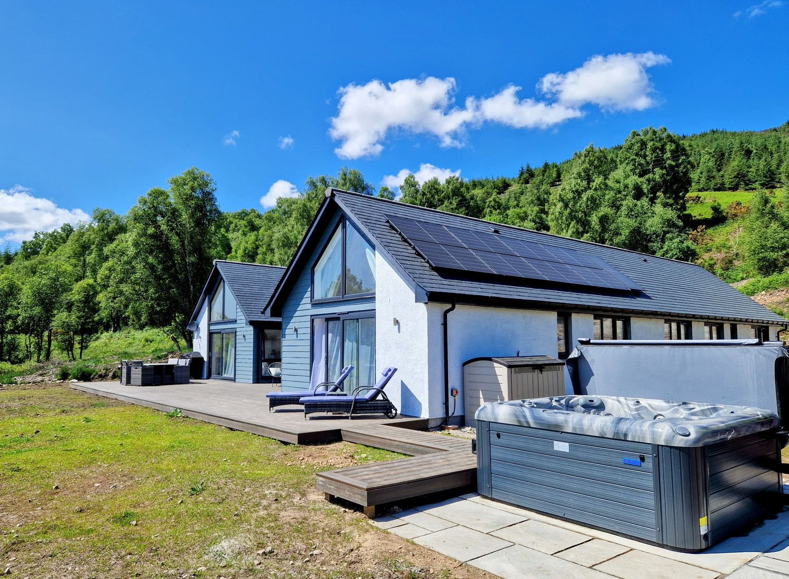 Holiday home The living areas in this ground-floor property consist of a kitchen/diner, a utility, and a sitting room with multi-fuel stove. Appliances include an electric oven and hob, microwave, fridge/freezer, washing machine, tumble dryer, dishwasher, and a Smart TV. The bedrooms consist of two king-sizes with en-suite shower rooms, and two twins can be made into kings upon request, serviced by a bathroom and a cloakroom. Outside, there is an unenclosed decking area with hot tub, along with available parking. Within 4 miles you'll find a shop, a pub in 4 miles, and .1 mile from the waterfront. Please note, this property welcomes one well-behaved dog please ensure it is kept to the social areas only, not in the in the bedrooms or soft furnsishing, but is non-smoking. Wi-Fi, fuel, power, bed linen, and towels are all included in the rent. For the ultimate escape to the Scottish Highlands, choose Taigh Moy. Note: Check-in from 4pm, check-out by 10am.