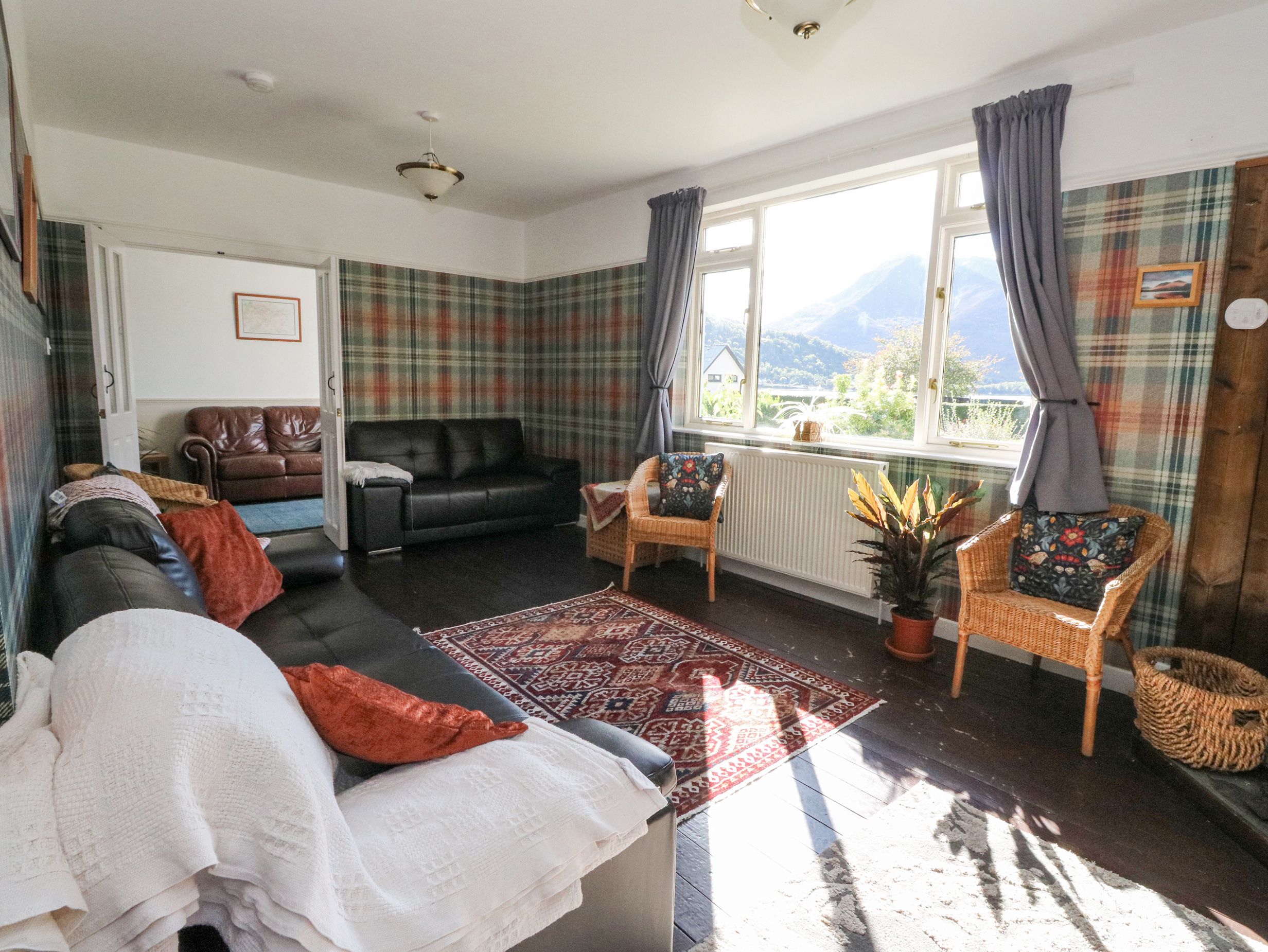 Please note: this property accepts Friday and Monday check-ins only. Callart View is a house that consists of a kitchen with a range oven with electric hob, microwave, fridge/freezer, kettle, and toaster, a utility room with a washing machine and dishwasher, a dining room with patio doors to the garden, and a sitting room with a TV and wood-burning stove. The bedrooms consist of a ground-floor kind size double, three first floor doubles with en-suite shower rooms and a TV in each room and a first floor twin with en-suite shower room. There is a ground-floor bathroom with a bath, shower over, basin and WC. Outside, there is a front non-enclosed lawn and patio with furniture and stunning loch views, plus a side decked terrace with furniture. Off-road parking is available for four cars. Shop 1.5 miles, pub 1.5 miles, Loch Leven 0.1 miles. WiFi, fuel, power, bed linen, and towels included in the rent. Sorry, no smoking. Enjoy a memorable escape to the Highlands at Callart View. Please note: this property accepts Friday and Monday check-ins only. Note: This property has a Good Housekeeping bond of £500.