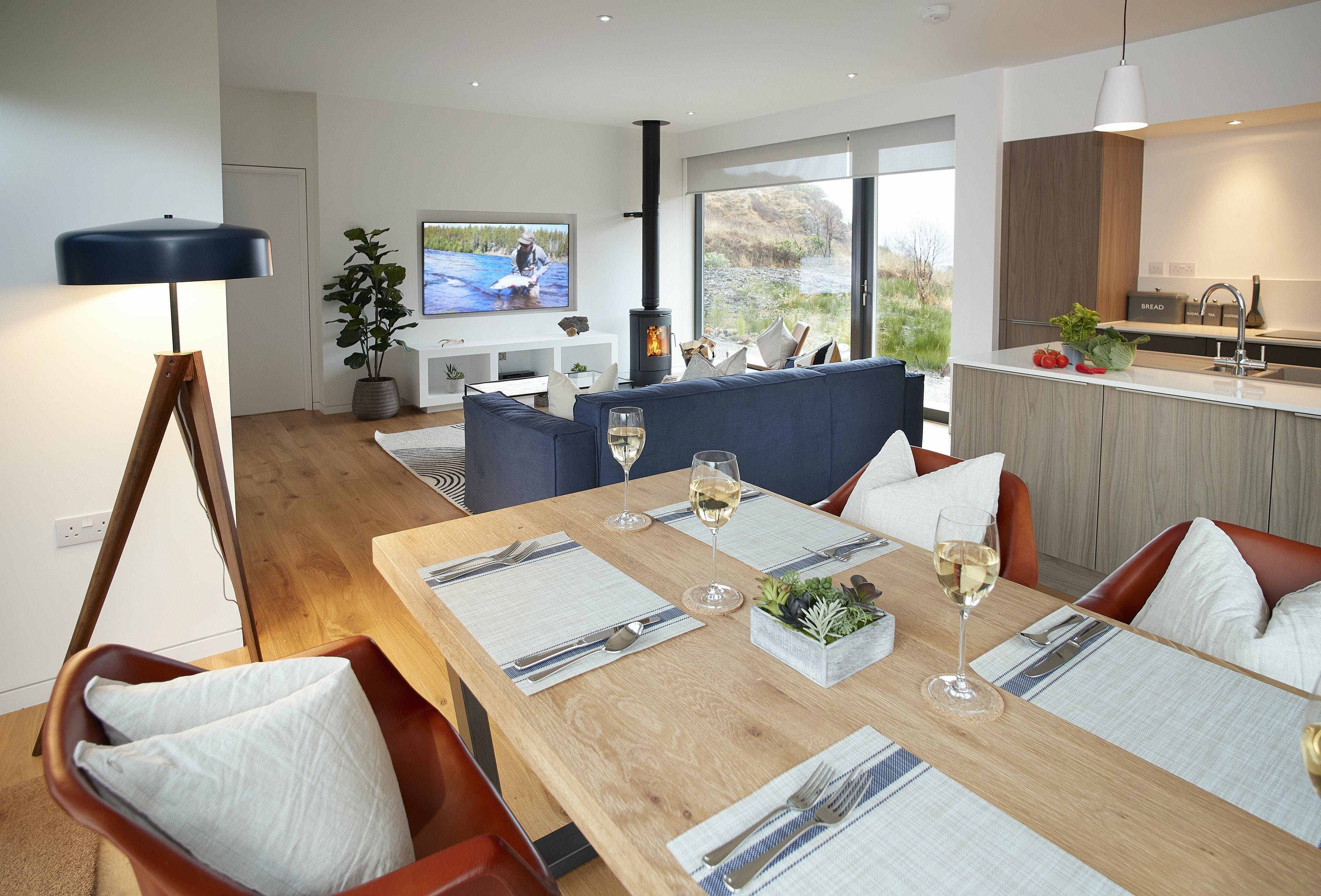 Escape to the Scottish Highlands and experience the beauty of nature at this modern cottage. With underfloor heating and a wood-burning stove, there’s no better place to hunker down than the living area. But when the weather’s fair, we recommend taking advantage of the decking area and garden that stretches down to the River Slatach. You’ll even be able to spot the famous Jacobite steam train passing nearby. While your host provides essentials like tea, coffee and sugar, if you need to stock up on other provisions, Fort William is the closest town, a thirty-minute drive away.
