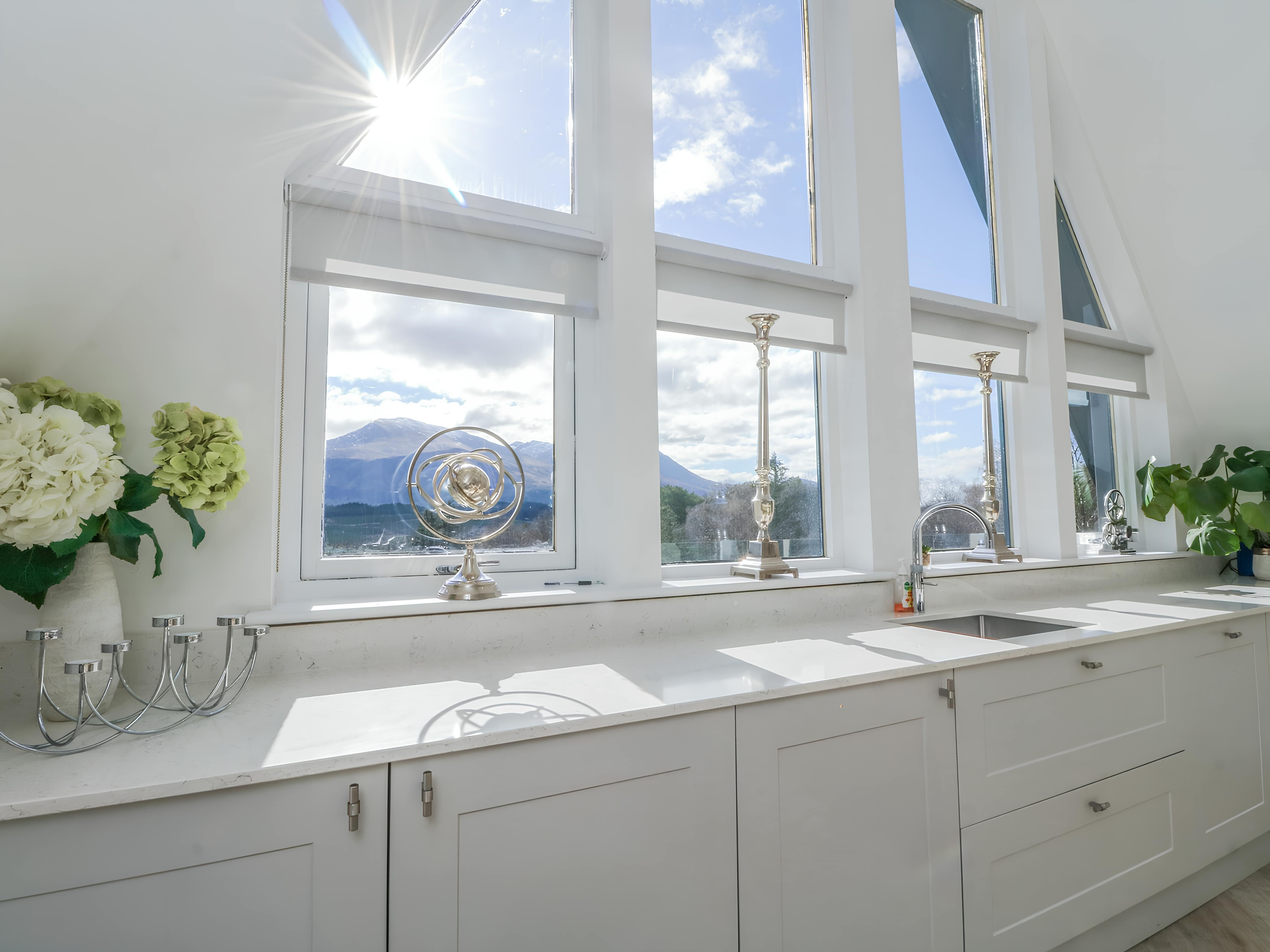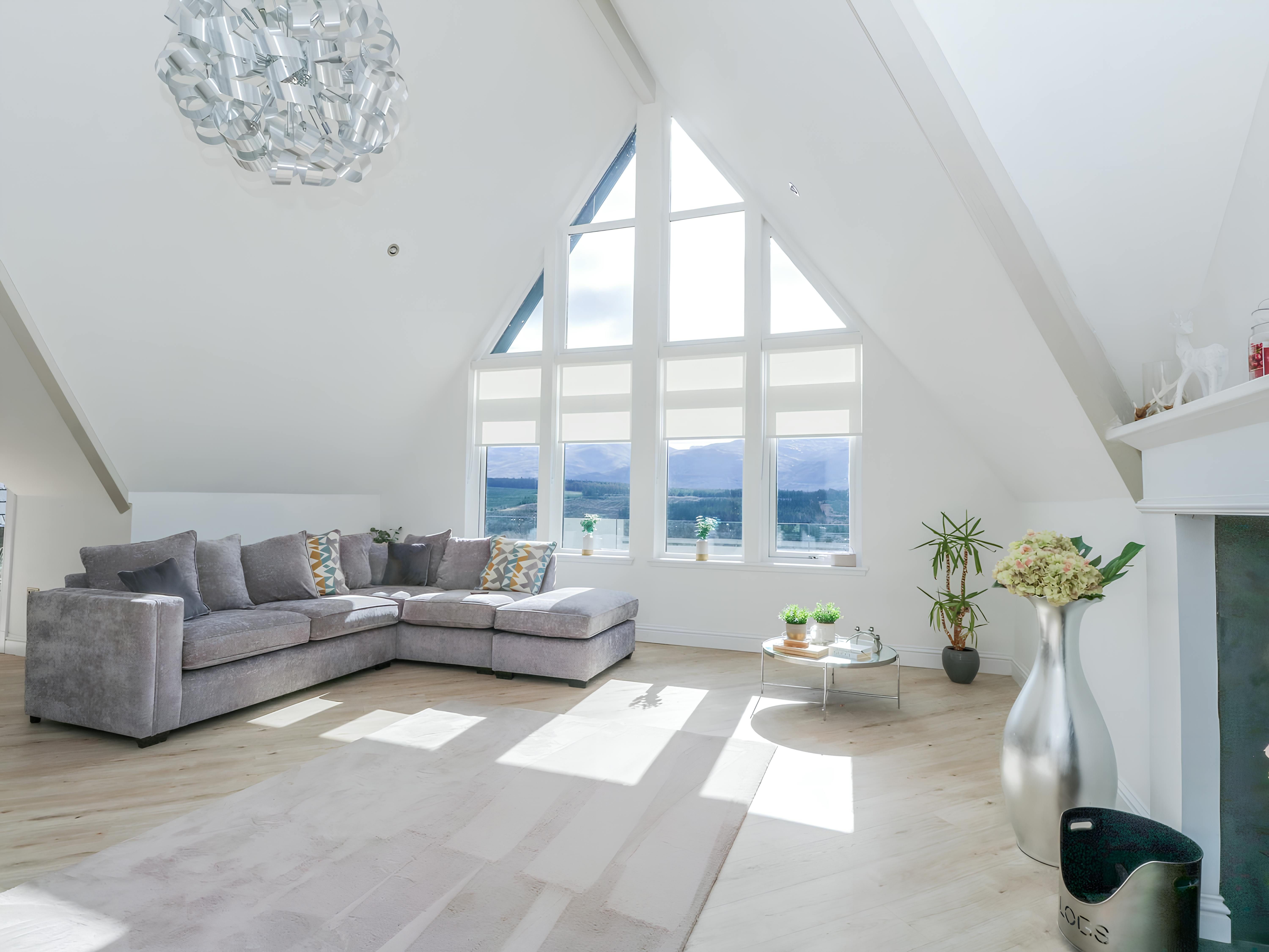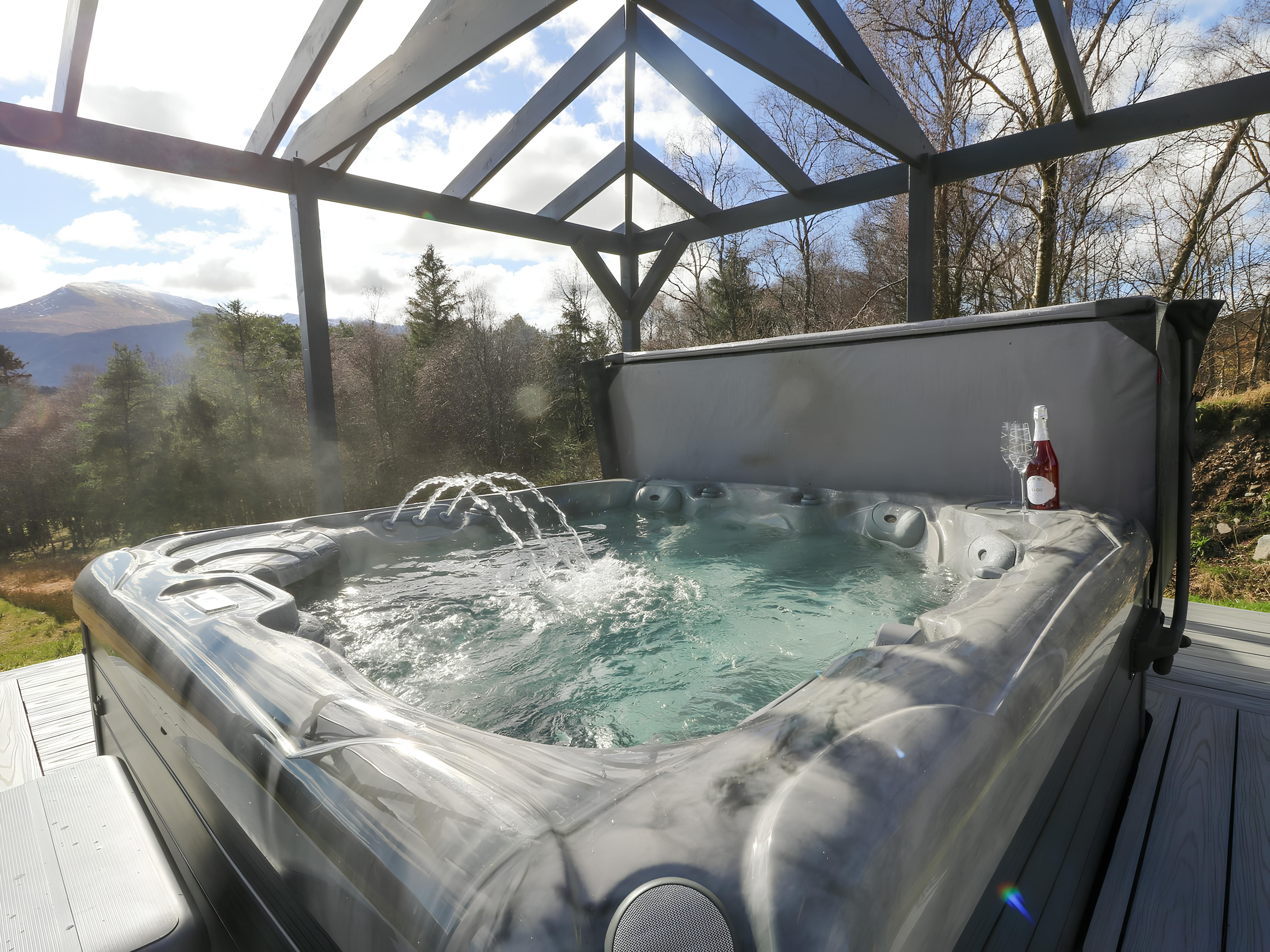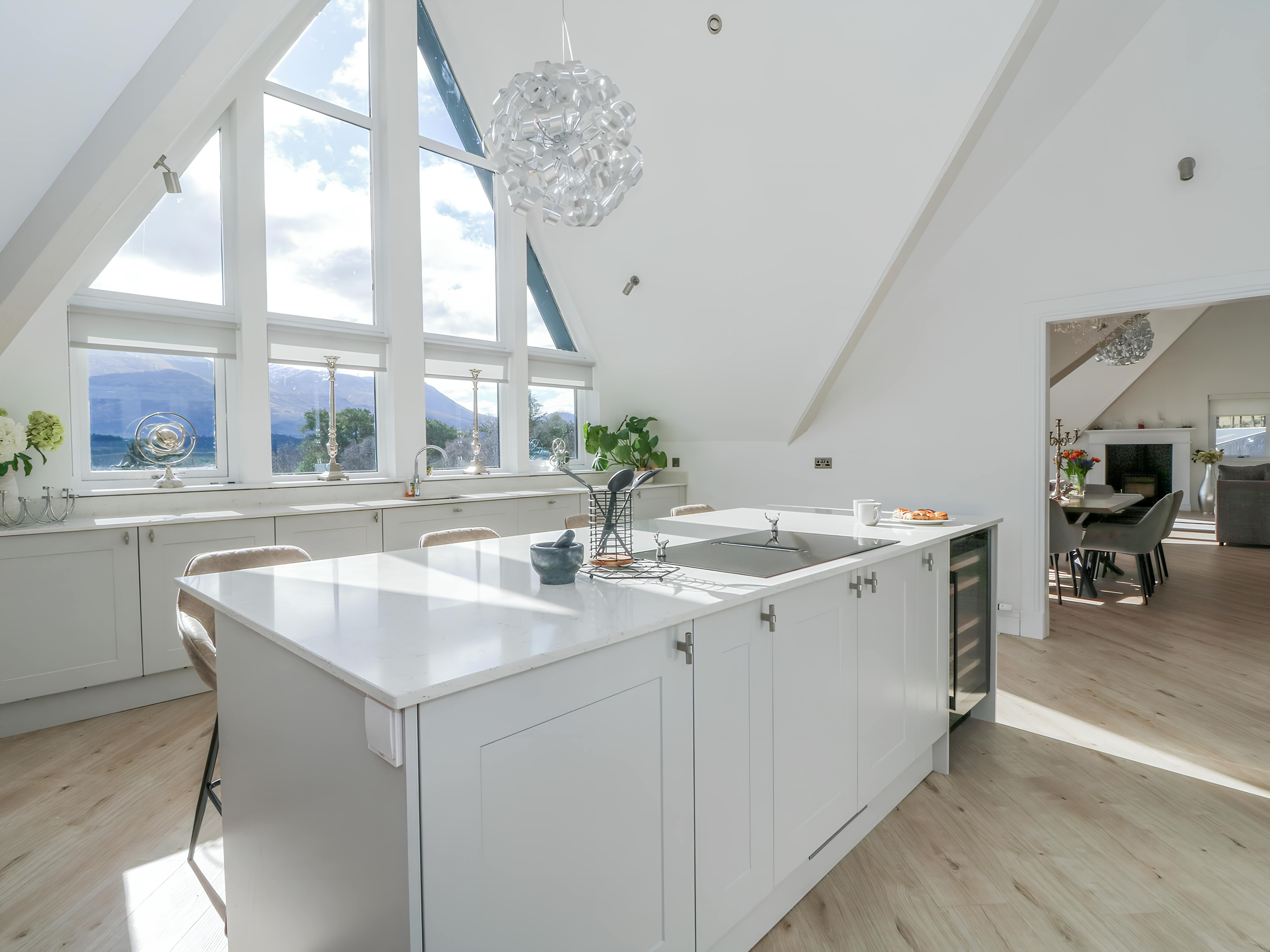 Down the river from Spean Bridge, this expansive ranch offers large groups an excellent base for exploring and admiring the Scottish Highlands. While its modern sensibility may mean some areas feel sparse, there's no shortage of space across the home's reversed levels – the open plan living room, dining area and double-equipped kitchen are found upstairs, with sweeping balcony views. Downstairs you'll find three of five bedrooms (all with en-suite bathrooms, three with super king-size beds, only one with a free standing bath tub) plus access to the rolling rear lawn, which features a large inviting hot tub. If you're planning to scale Ben Nevis, the visitor centre is a fifteen minute drive away, as is the town of Fort William.