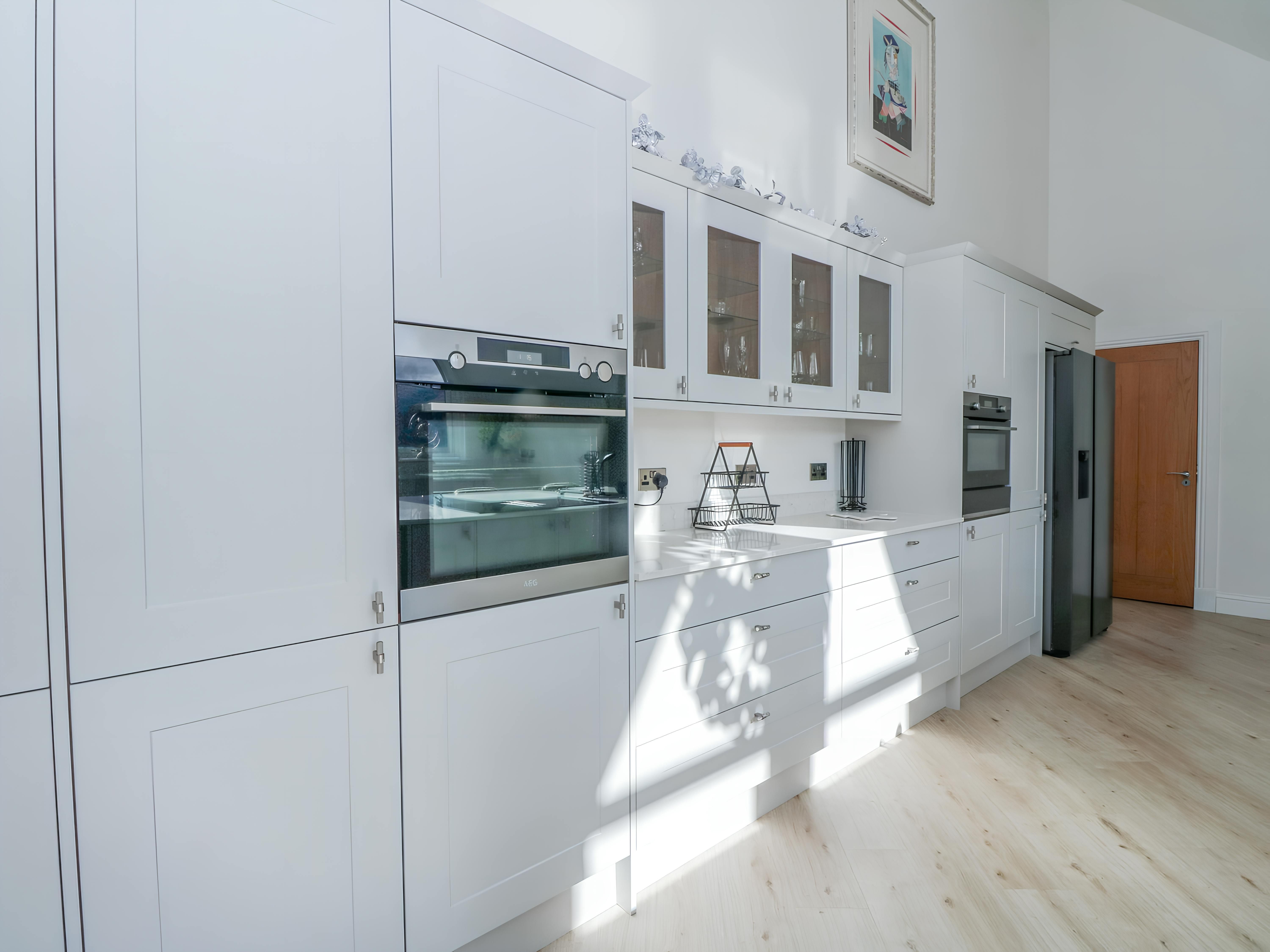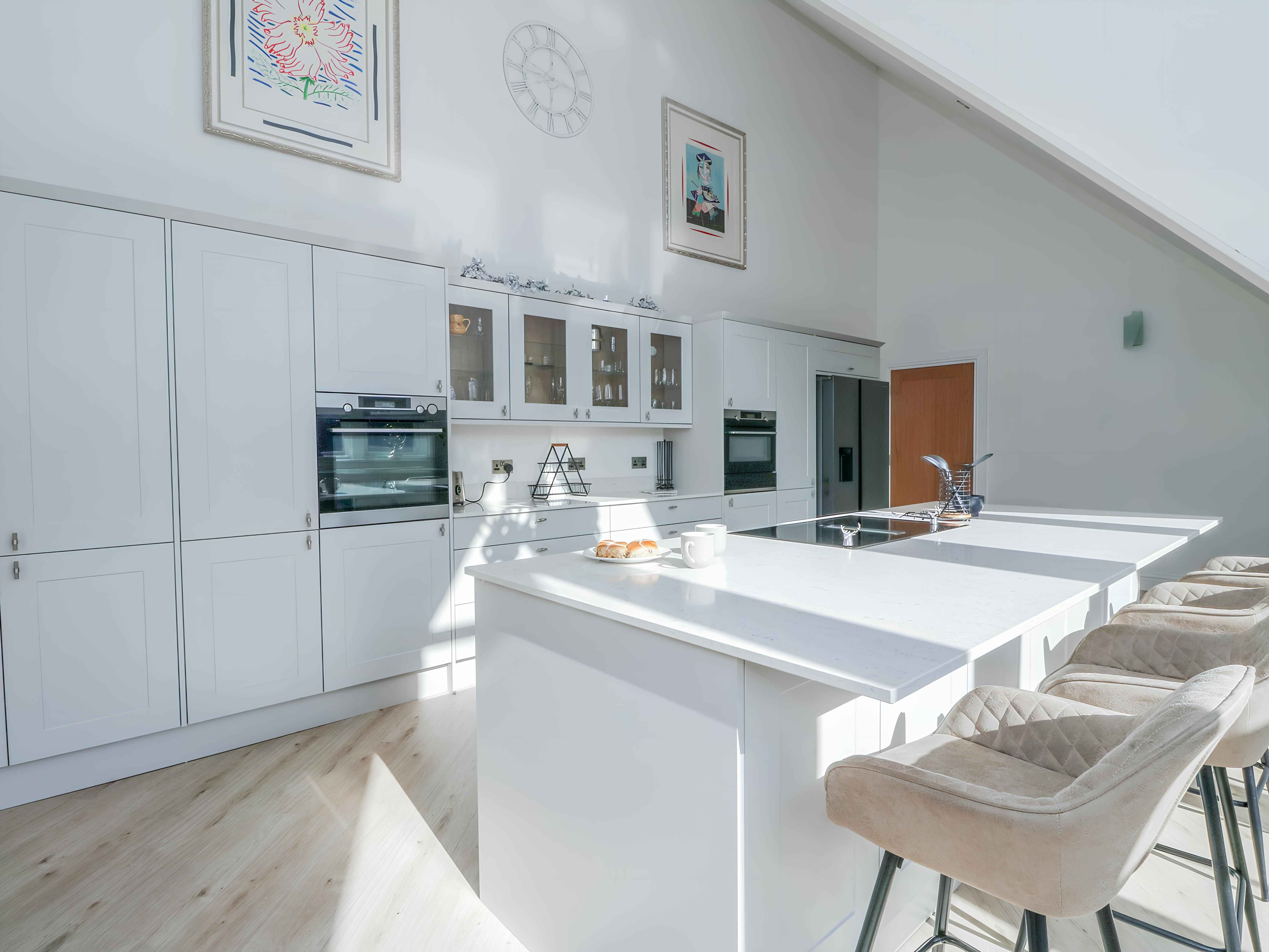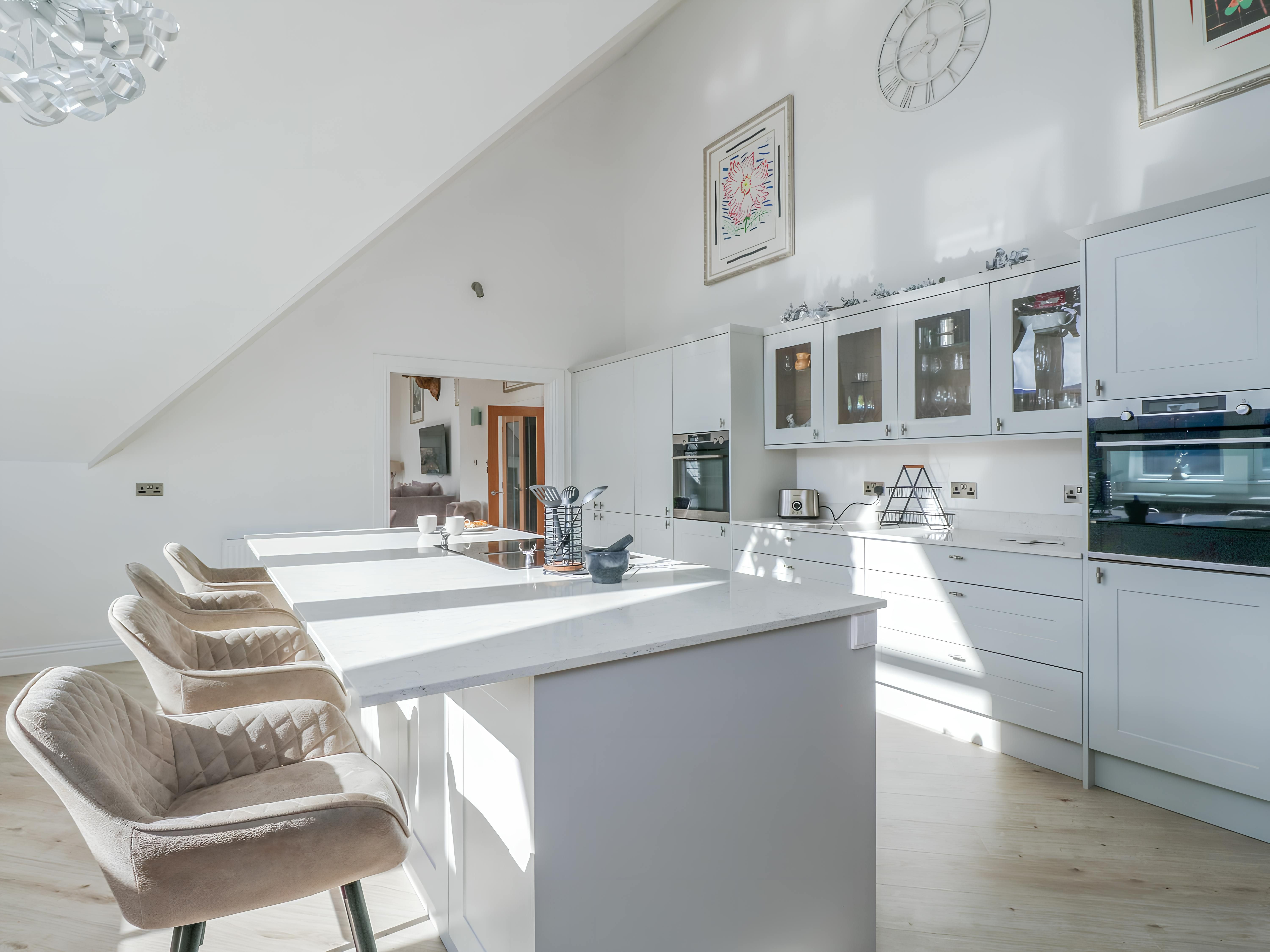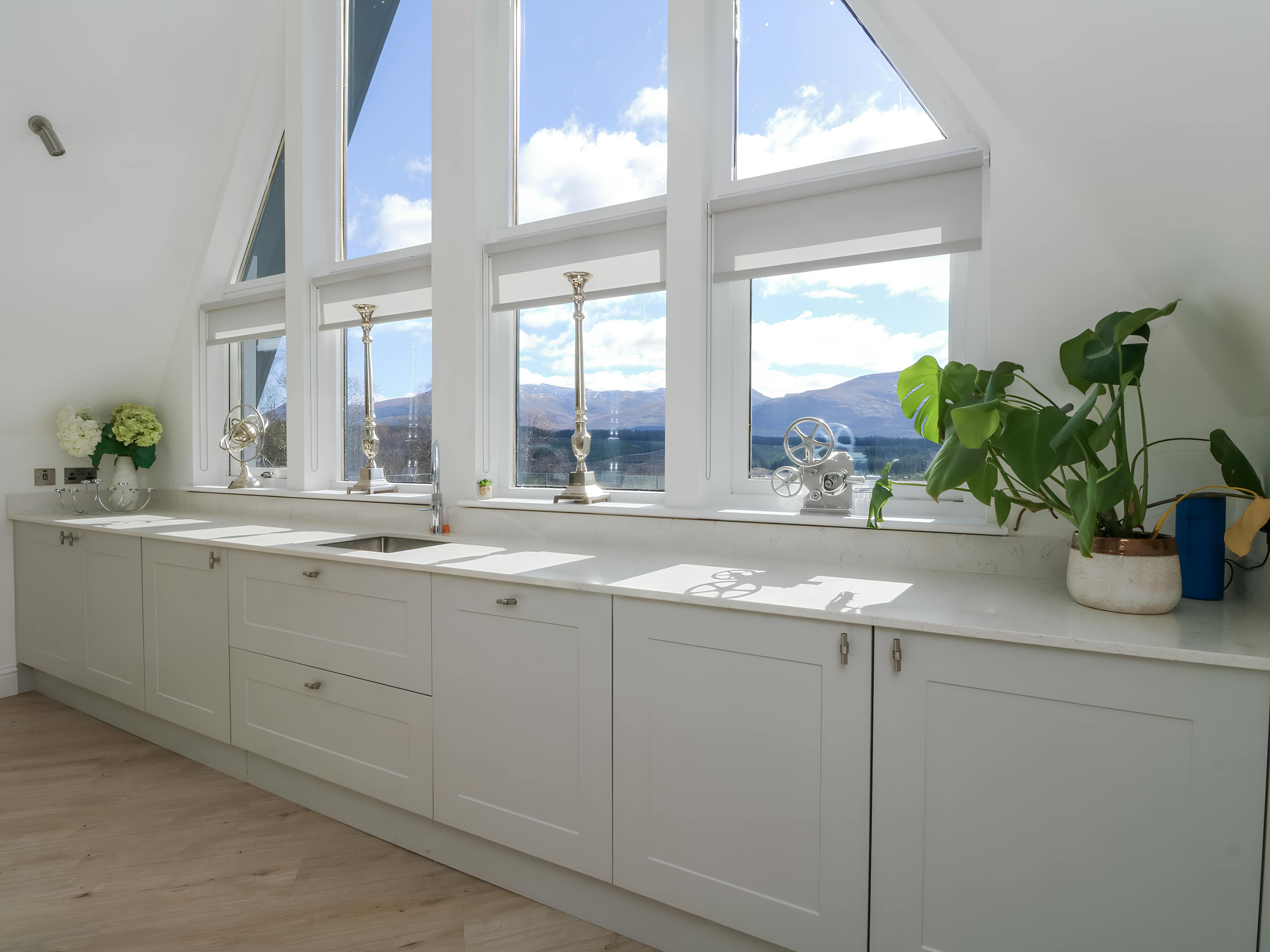 Down the river from Spean Bridge, this expansive ranch offers large groups an excellent base for exploring and admiring the Scottish Highlands. While its modern sensibility may mean some areas feel sparse, there's no shortage of space across the home's reversed levels – the open plan living room, dining area and double-equipped kitchen are found upstairs, with sweeping balcony views. Downstairs you'll find three of five bedrooms (all with en-suite bathrooms, three with super king-size beds, only one with a free standing bath tub) plus access to the rolling rear lawn, which features a large inviting hot tub. If you're planning to scale Ben Nevis, the visitor centre is a fifteen minute drive away, as is the town of Fort William.