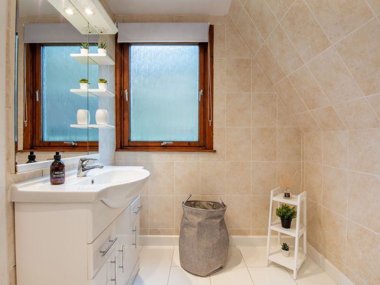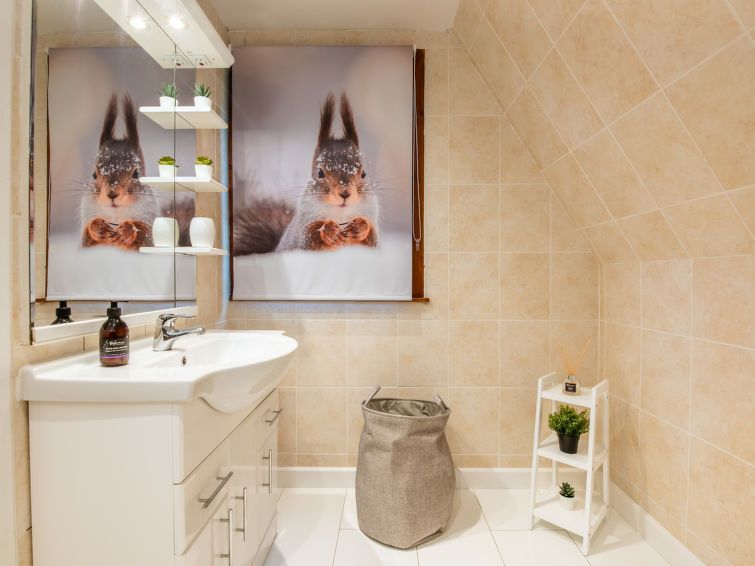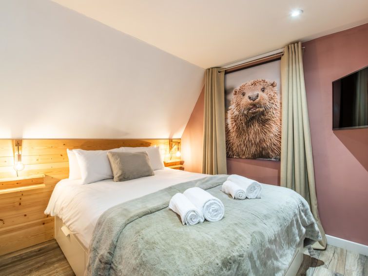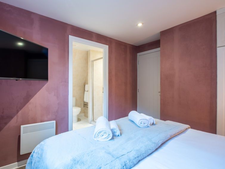 3-room chalet 47 m2. Bright, very comfortable and tasteful furnishings: open living/dining room with 1 double sofabed, dining table and TV (flat screen), radio. Exit to the terrace. 1 double bedroom with 1 double bed and shower/WC. 1 double bedroom with 2 beds. Open kitchen (4 hot plates, oven, dishwasher, microwave, grill).