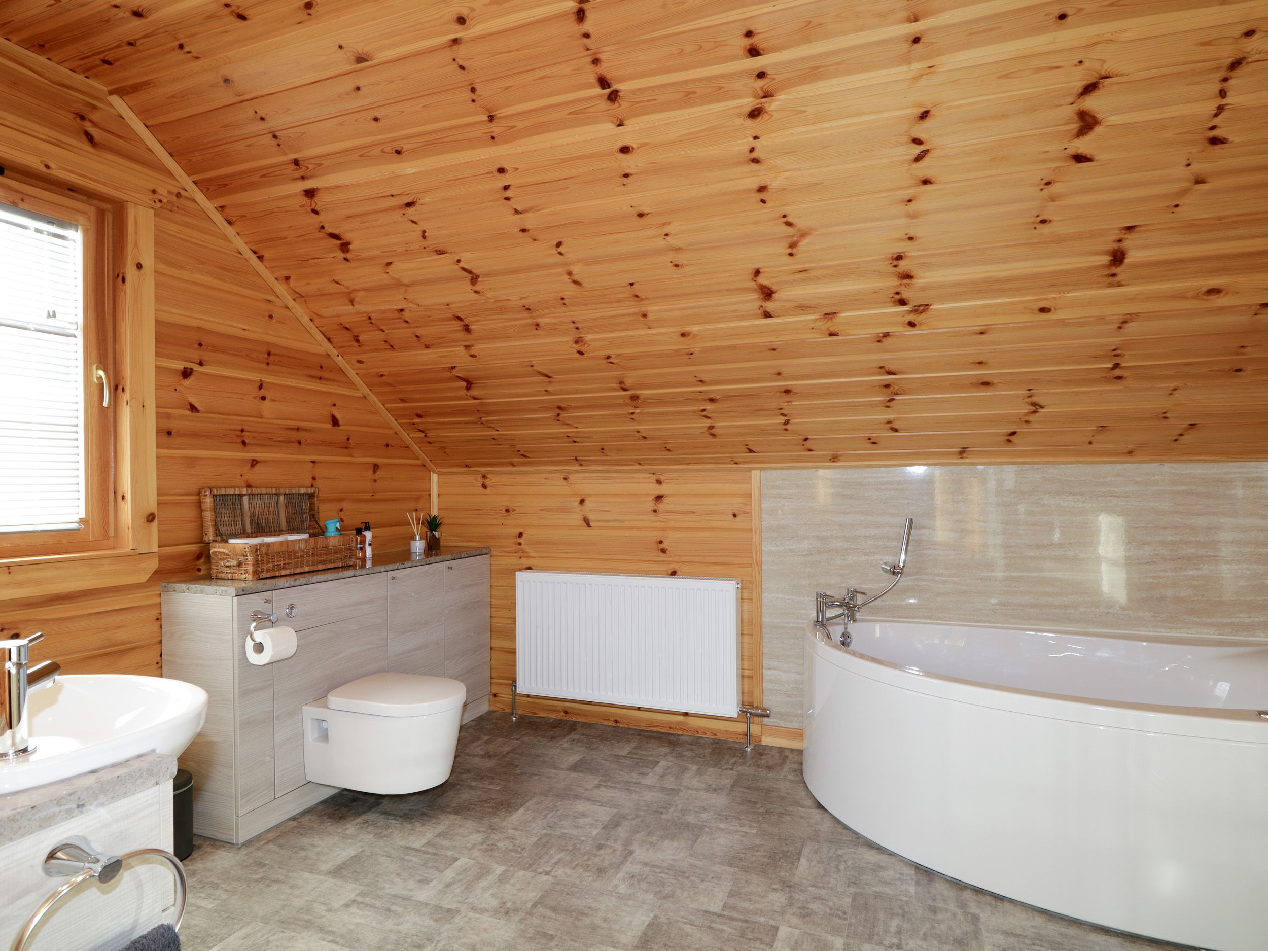Amenities Ground source heating and underfloor heating with woodburning stove. Electric oven and ceramic hob, microwave, fridge/freezer dishwasher, washing machine, tumble dryer, TV and WiFi. Fuel, power and starter pack for woodburning stove inc. in rent. Bed linen and towels inc. in rent. Off-road parking for 4 cars. Lawned garden and decking area with furniture. Two well-behaved pets welcome. Sorry, no smoking. Shop 6 miles and pub 2.9 miles. Note: The property is accessible for those with limited mobility as it has ramp access into the lodge