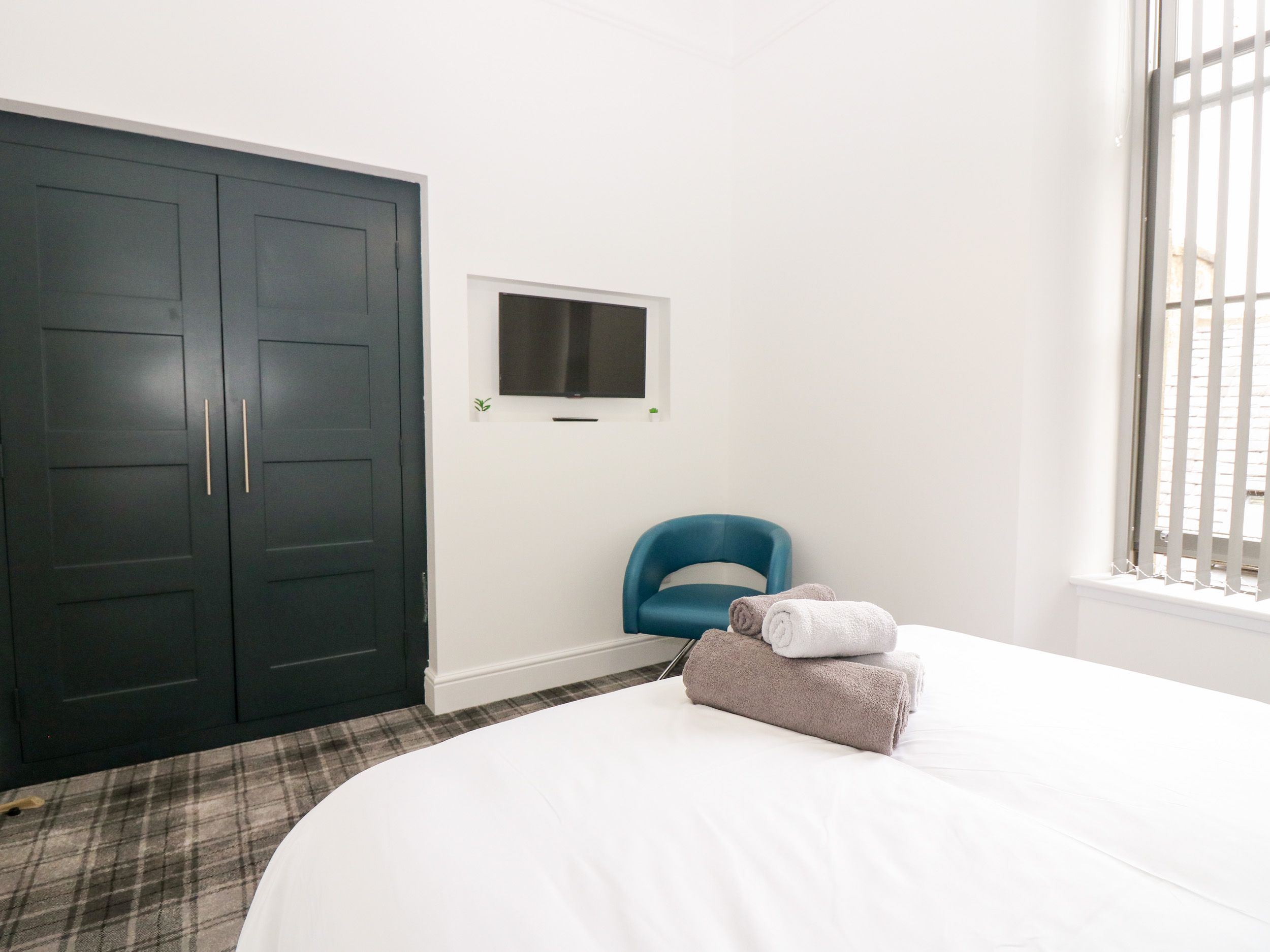 Holiday home Council Chambers at The Institute Executive Apartments is a fantastic duplex apartment nestled in Keith, Moray. Hosting two bedrooms, including a king-size with TV and a twin room with TV, along with a shower room, this property can sleep up to four guests. There is also an open-plan living space with kitchen, dining area and sitting area. Outside there is off-road parking for up to four cars in a private car park, with additional parking in a nearby public car park, and a shared sheltered sitting area. For your next Scotland adventure in a superb setting, choose Council Chambers at The Institute Executive Apartments.