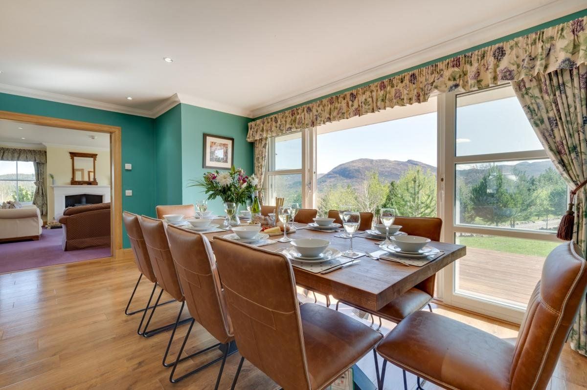 Located 0.5 miles from Easter Drummond and 8 miles from Fort Augustus, the impressive eight-bedroom holiday home sleeps up to 16 guests and comes with a number of luxurious touches, including two hot tubs and a barrel sauna.