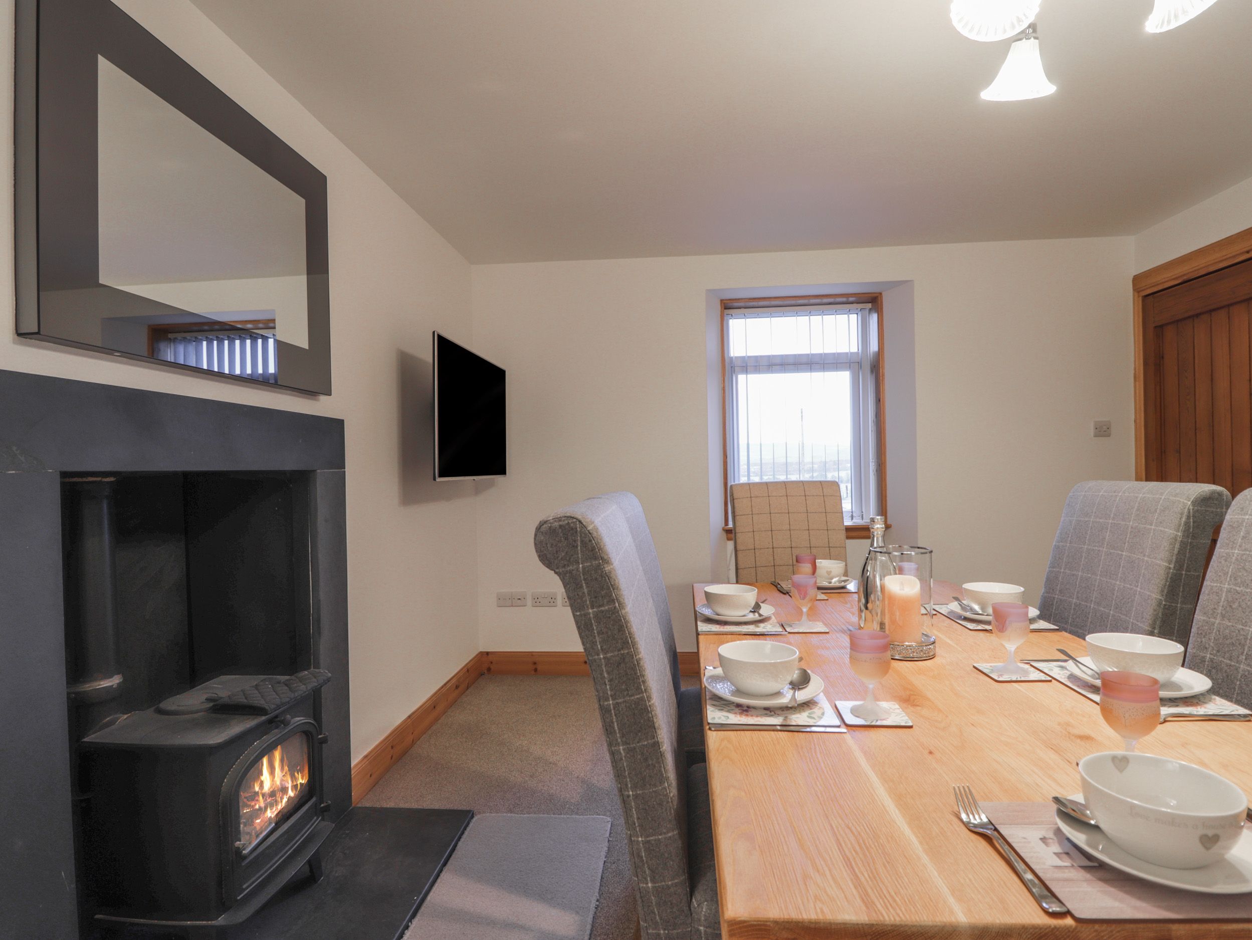 Accomodation Details Three bedrooms: 1 x king-size, 1 x double, 1 x twin. Ground-floor bathroom with bath, walk-in shower, basin, heated towel rail and WC. Kitchen. Dining room with TV and woodburning stove. Sitting room