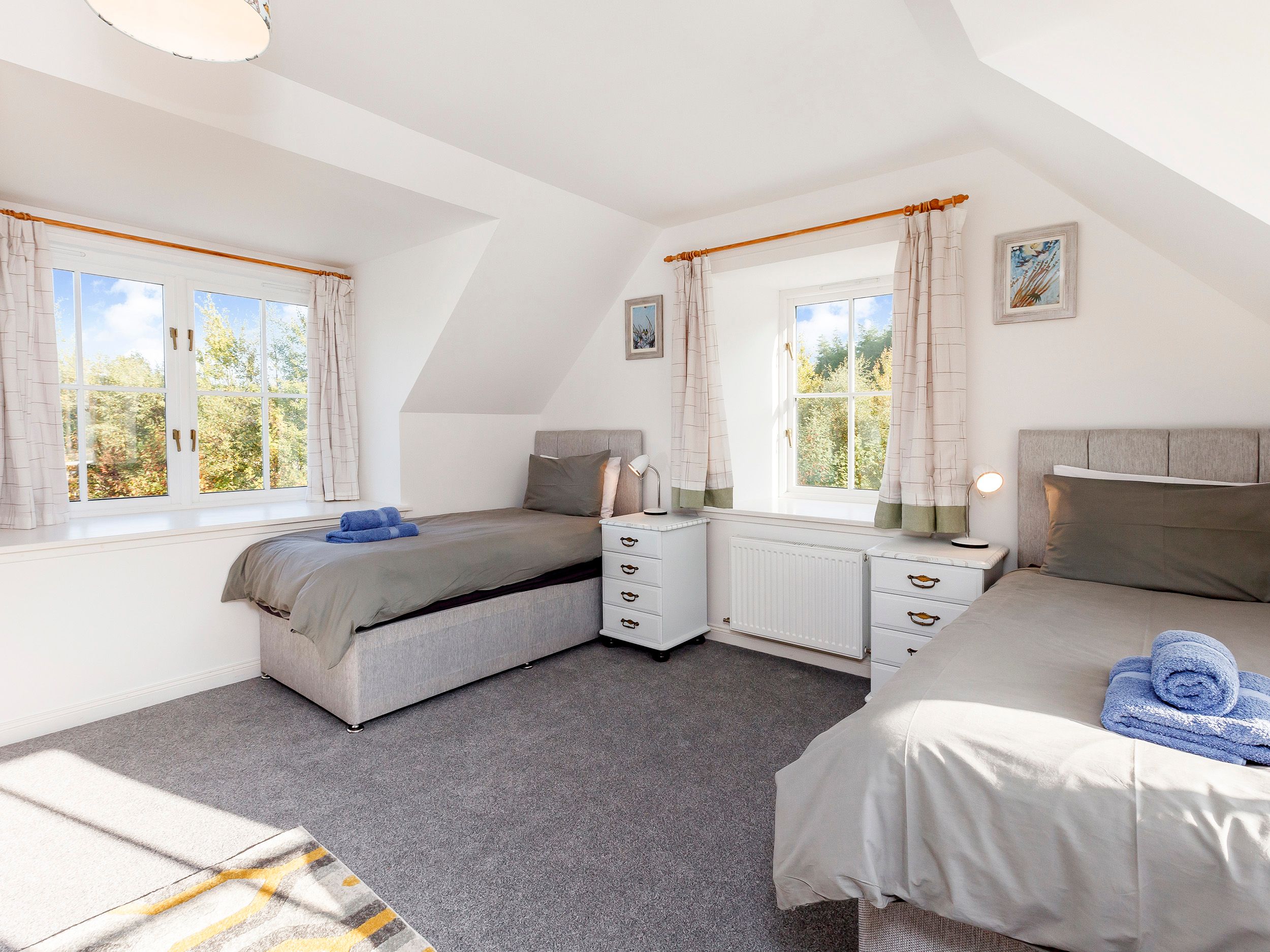 Accomodation Details The property will have a Saturday change over in 2024. Five bedrooms: 1 x super-king-size with en-suite double walk-in shower, basin and WC, 3 x super-king size (zip/link can be twins on request), 1 x super king-size. 1 x bathroom with roll-top bath, hand-held shower, large walk in shower, basin and WC. 1 x bathroom with large walk in shower, basin and WC. 2 x cloakrooms, Kitchen, Utility room, Dining room, Sitting room and Snug.