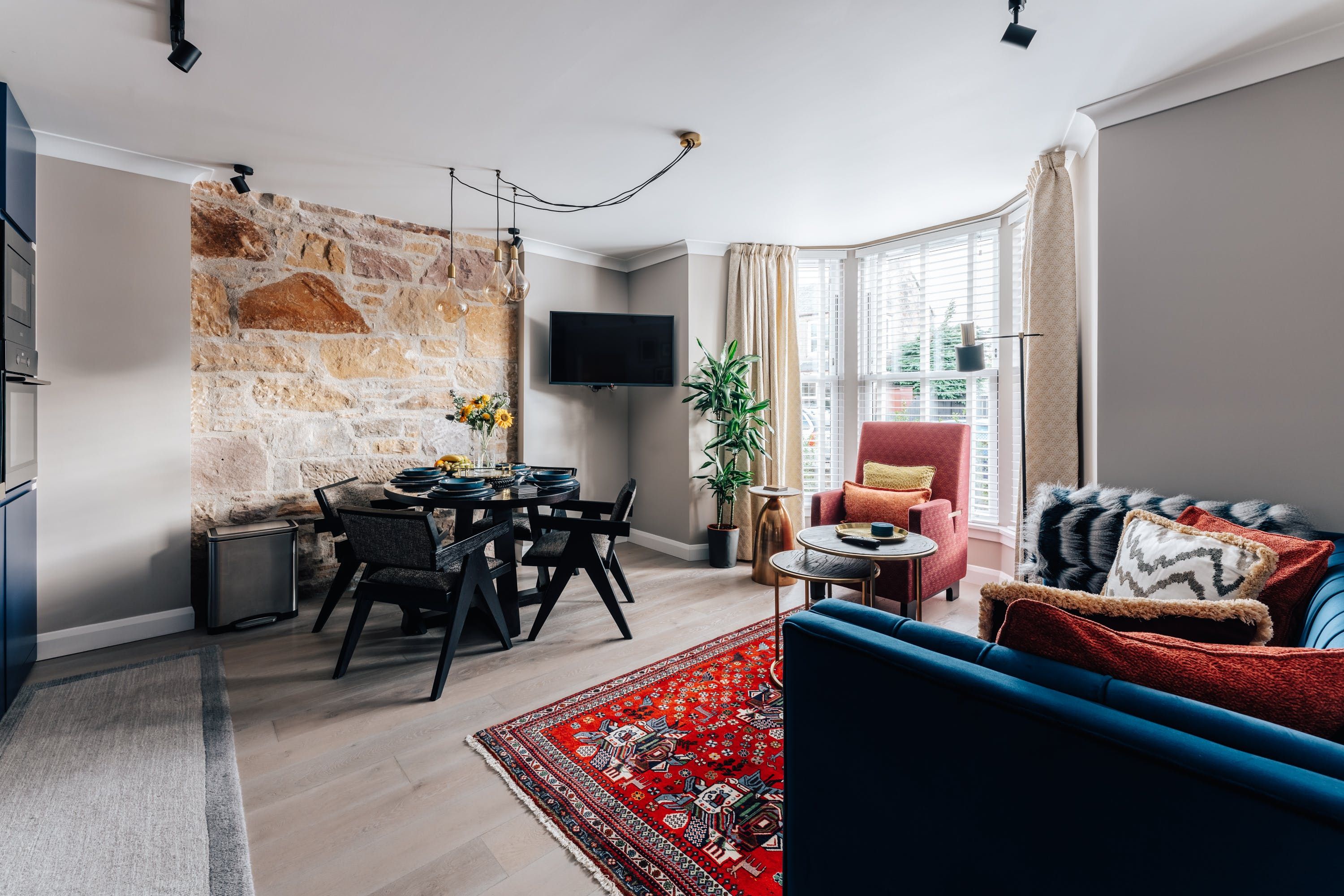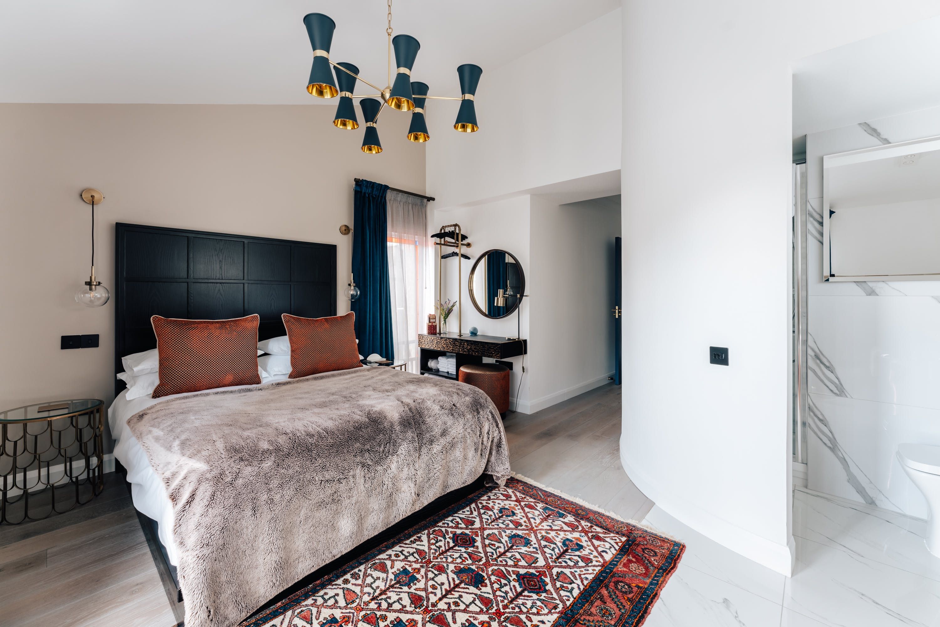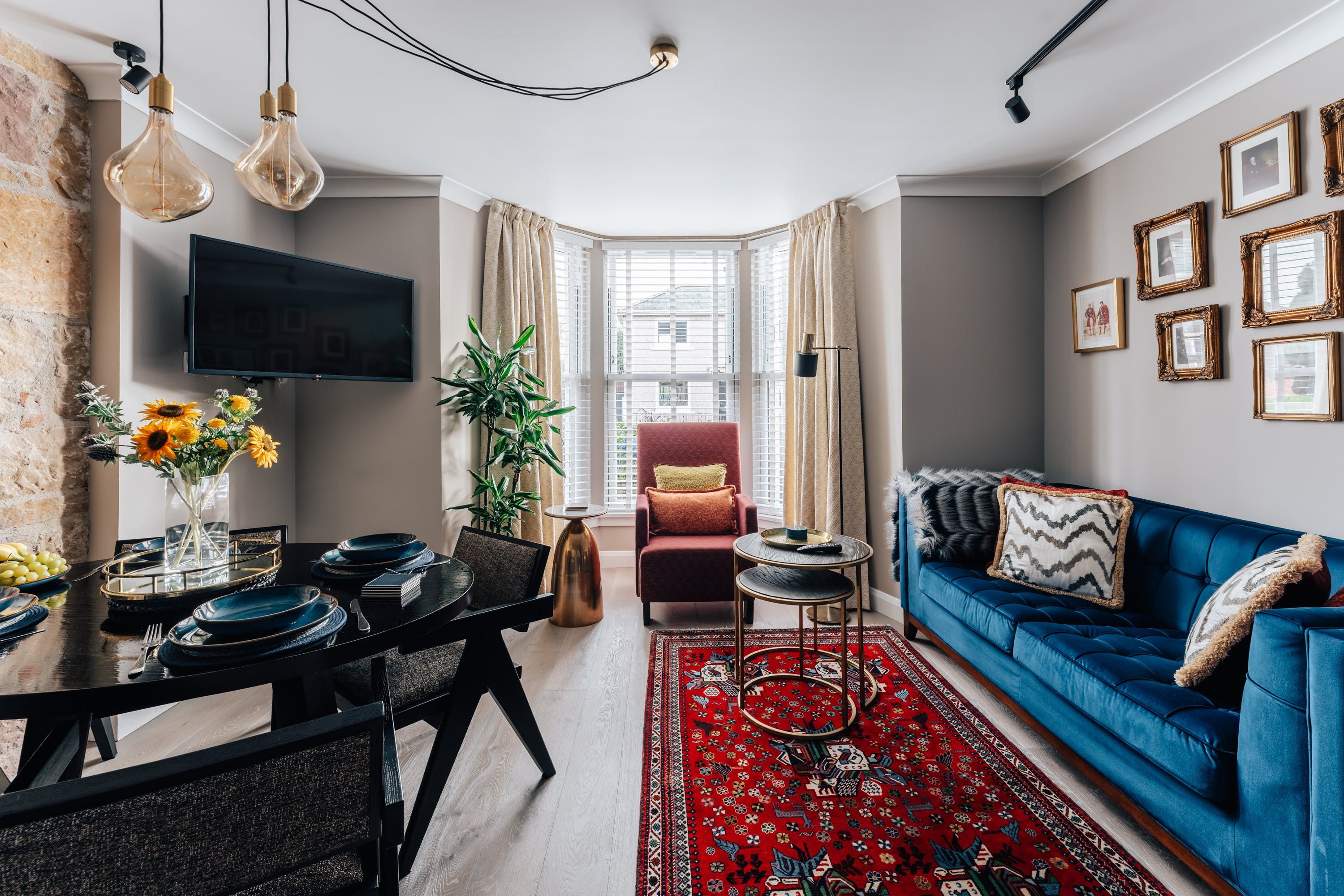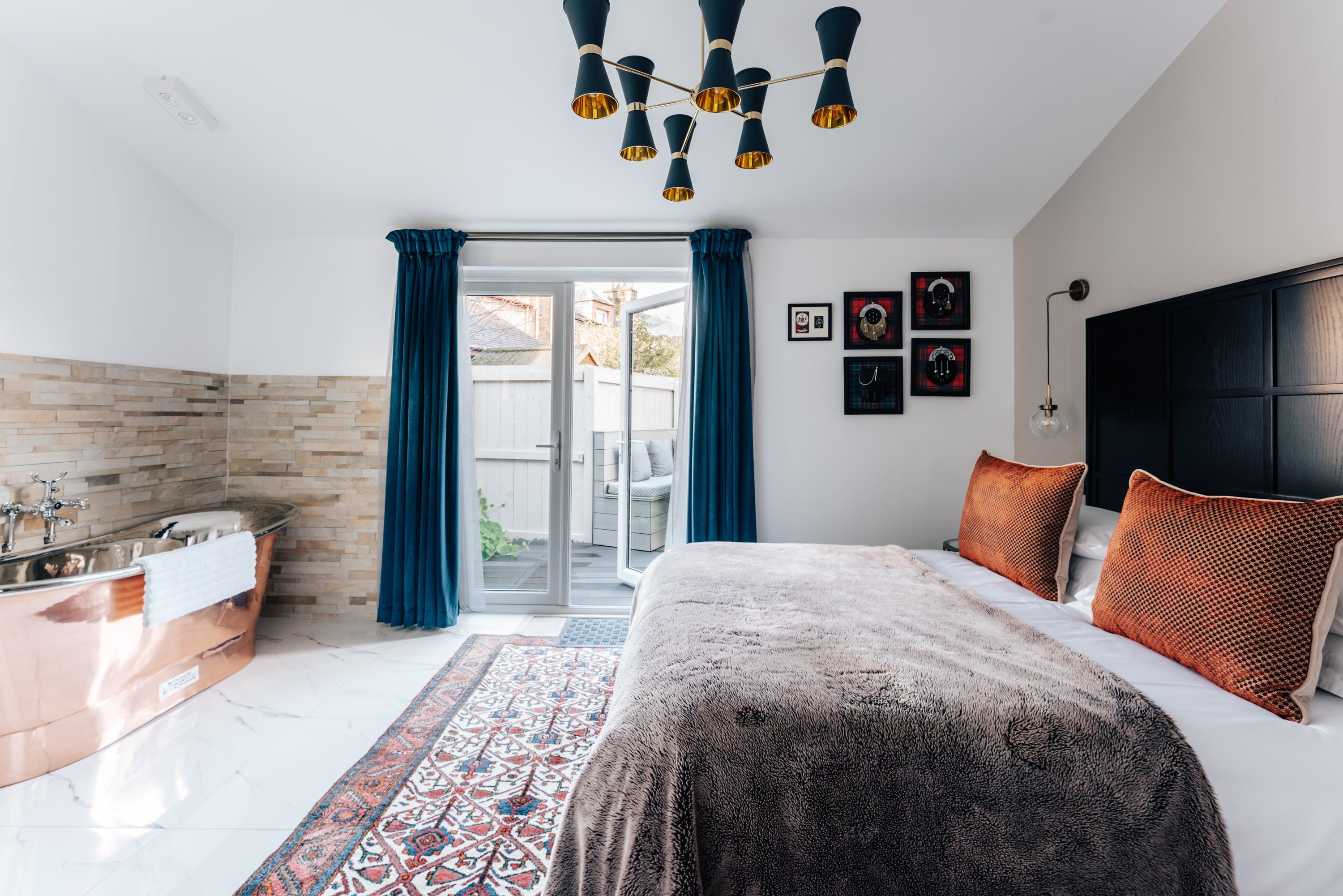 From the outside, this Victorian home looks as quaint as quaint can be, but inside, guests will find an apartment that mixes vintage and modern aspects with considerable dexterity. In the living room, a large bay window floods the space with natural daylight, which dances nicely off the wooden floors and walls painted in muted grey. The Persian rug and deep blue sofa add some bold splashes of colour. Elsewhere, we're big fans of the gleaming copper bathtub in the master bathroom that promises to be as comfortable as it is handsome. Off the same room, there's access to a cute terrace with alfresco seating — yes, it's Scotland, but put on a jumper and enjoy the dramatic sunsets that this corner of the country enjoys. The home's only an eight-minute walk from the River Ness and Inverness's town centre, which includes a castle and an art gallery. Alternatively, if you're feeling more active, Cairngorms National Park takes around half an hour to reach in the car.
