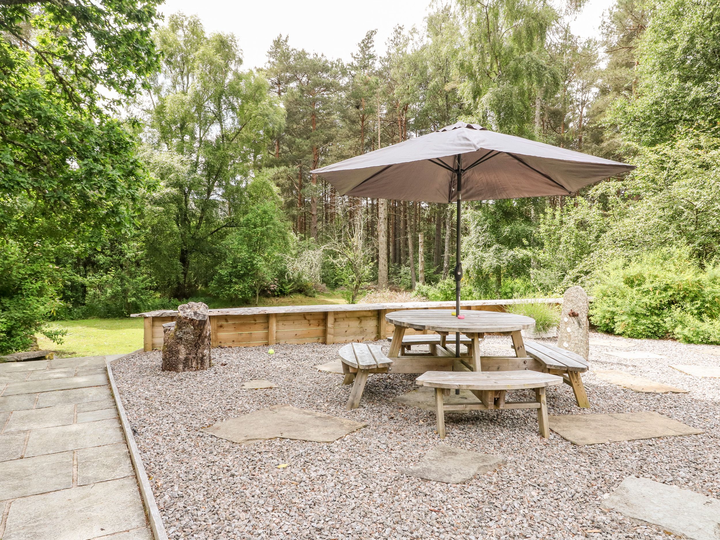 Holiday home Tigh Na Drochit is a detached cottage in the secluded village of Garve in Ross-shire, Scotland. It provides five en-suite bedrooms made up of three doubles and two twin rooms, along with a family bathroom including a sauna, the property can sleep ten people. The interior also boasts an open-plan living area with a kitchen, dining area, breakfast bar and sitting area with woodburning stove, as well as a utility, a sitting room and a snug room. To the outside you will discover plenty of off road parking and a lawn and patio garden with furniture along with a games room. Tigh Na Drochit is a tremendous cottage in a beautifully peaceful woodland location.
