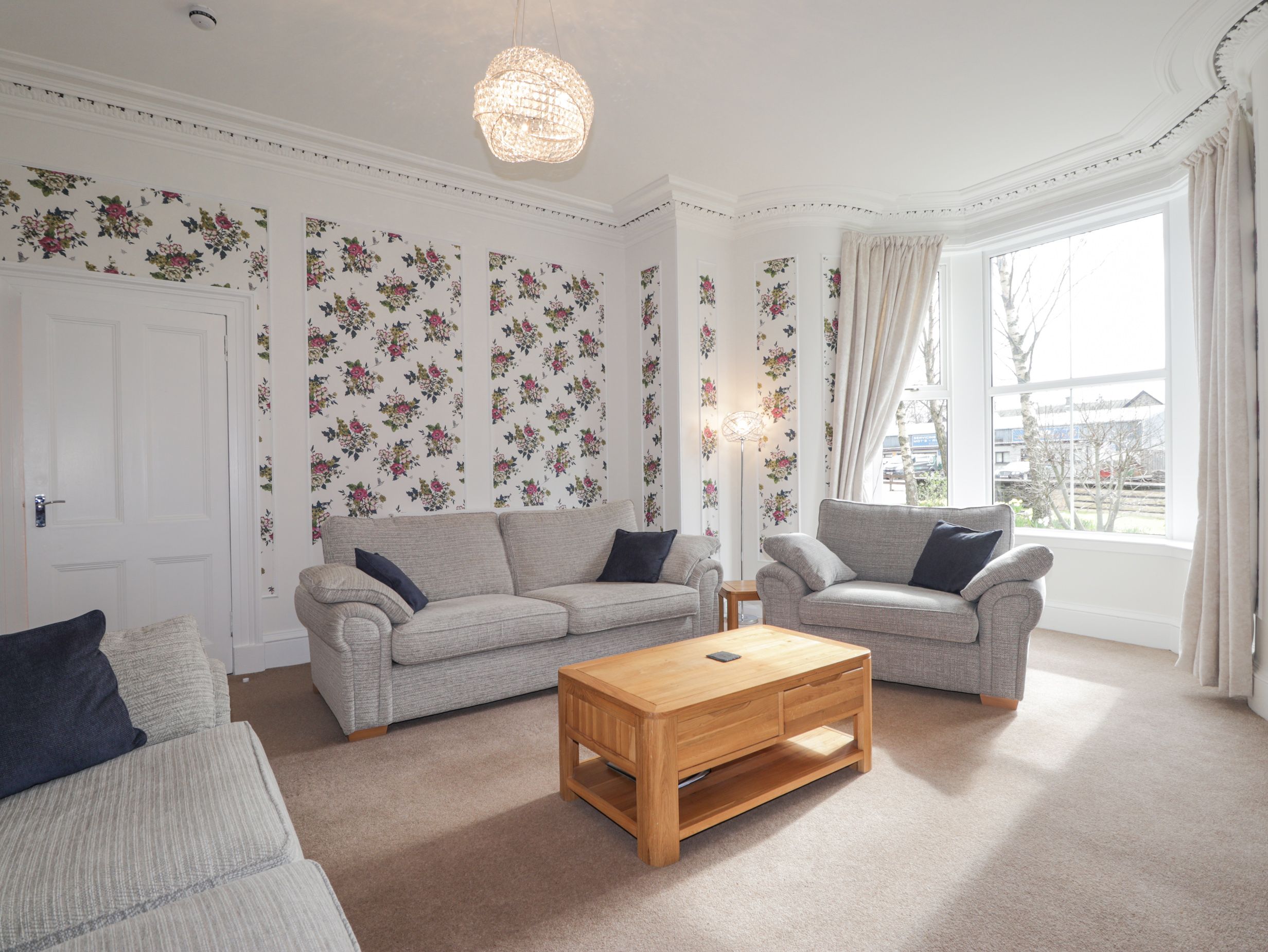 Central heating. Electric Range oven, gas hob, microwave, fridge/freezer, washing machine, tumble dryer, dishwasher, kettle, toaster. 2 x TV, WiFi. Fuel and power inc. in rent. Bed linen and towels inc. in rent. Cot available, please bring your own bedding. Off-road parking for 6 cars. Fully enclosed wrap-around garden with lawn, patio, secure bike storage, charcoal barbecue and furniture. Shop and pub 0.1 miles, loch 1.4 miles. Please note this property does not accept stag, hen or party bookings. Please note: For Christmas and New Year bookings there is a 5 night minimum stay
