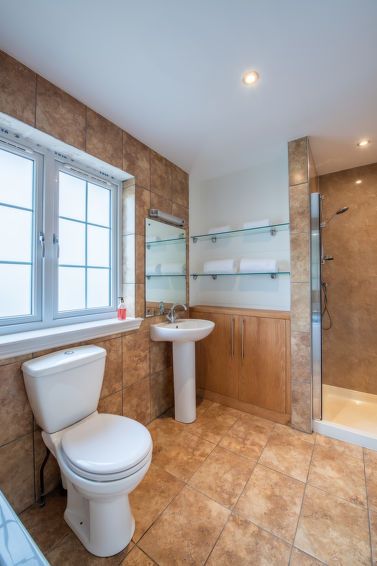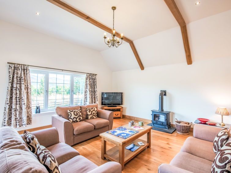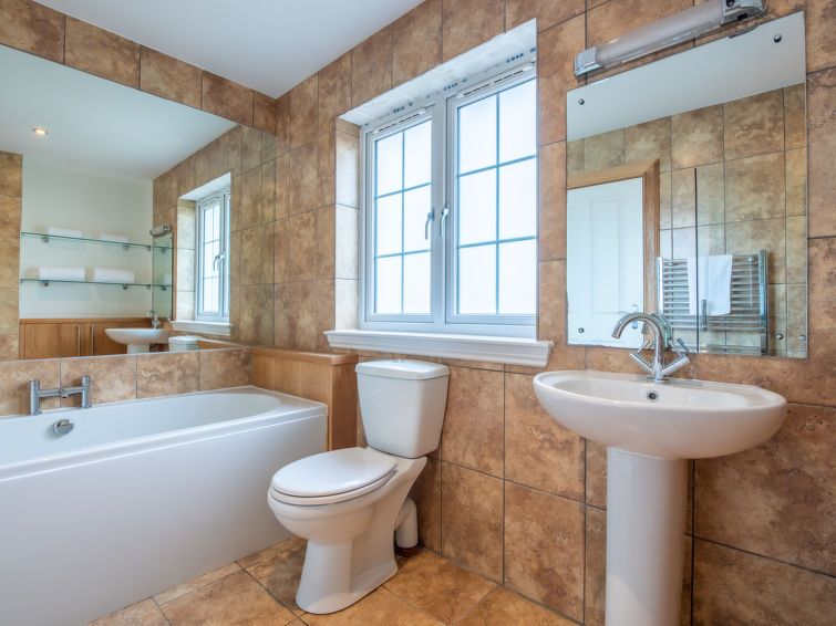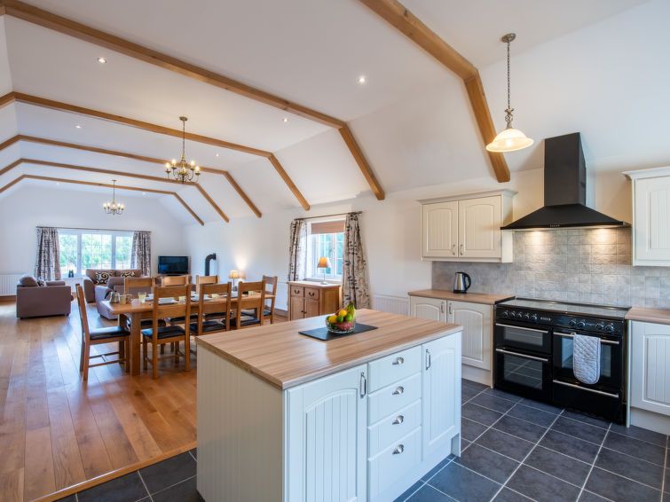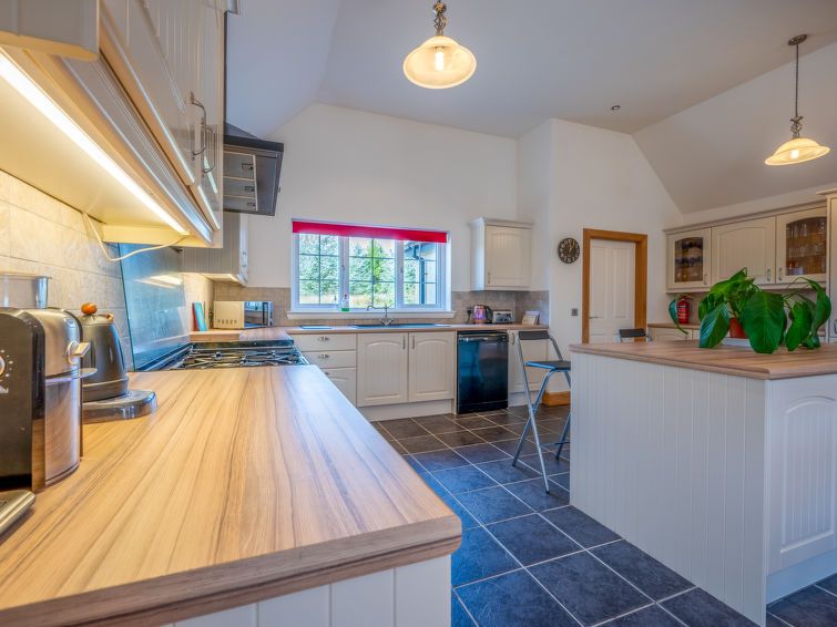 4-room cottage 154 m2. Spacious and bright, modern and tasteful furnishings: open living/dining room with dining table and TV (flat screen), gas heater. 1 double bedroom with 1 double bed and shower/WC. 1 double bedroom with 1 double bed. 1 double bedroom with 2 beds. Large, open kitchen (oven, dishwasher, 4 ceramic glass hob hotplates, toaster, kettle, microwave, freezer).