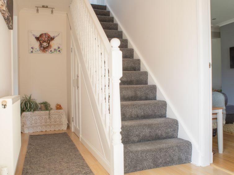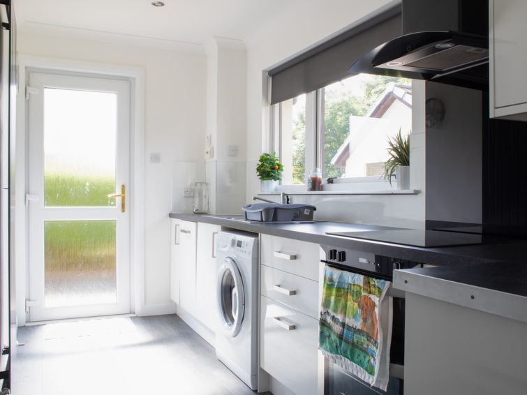 "4 Storr Place", 4-room semi-detached house. Comfortable and cosy furnishings: living/dining room with dining table, digital TV and heating stove. Exit to the garden. 1 double bedroom with 1 double bed and shower/WC. (oven, 4 ceramic glass hob hotplates, toaster, kettle, microwave).