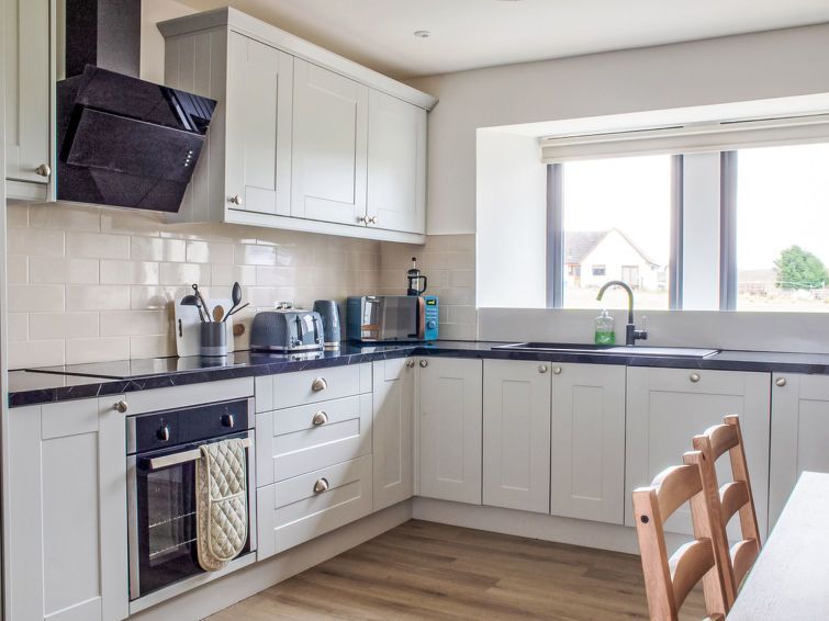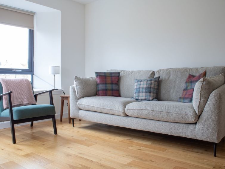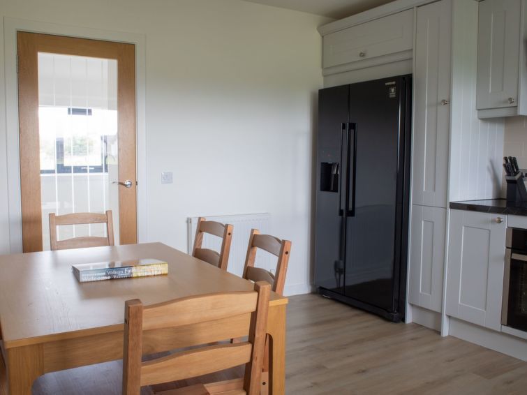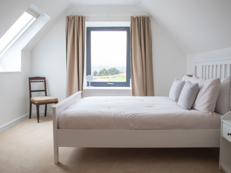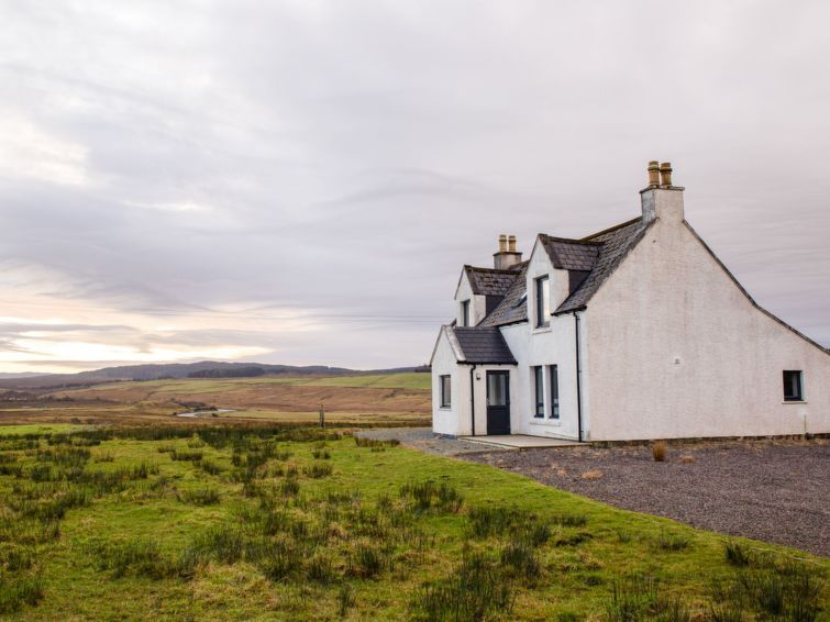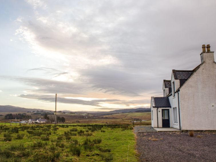 "Carbost Cottage", 5-room cottage 140 m2 on 2 levels. Comfortable and cosy furnishings: living room with TV (flat screen), wood-burning stove. Exit to the patio. 1 double bedroom with 1 double bed. Large, open kitchen in the entrance (oven, dishwasher, 4 ceramic glass hob hotplates, toaster, kettle, microwave, freezer) with dining table.