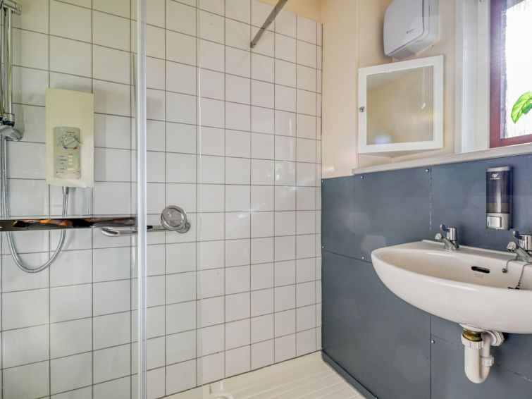 3-room bungalow. Modern and tasteful furnishings: living/dining room with TV (flat screen), electric heater. 2 double bedrooms, each room with 1 double bed. Kitchen (4 hot plates, oven, toaster, kettle, microwave, grill). Shower/WC. Gas heating. Large garden, lawn. Terrace furniture, barbecue (portable).