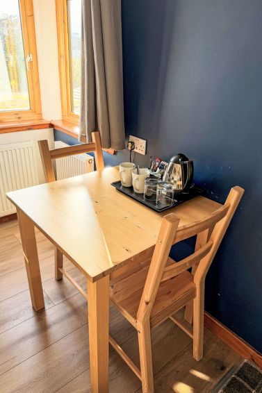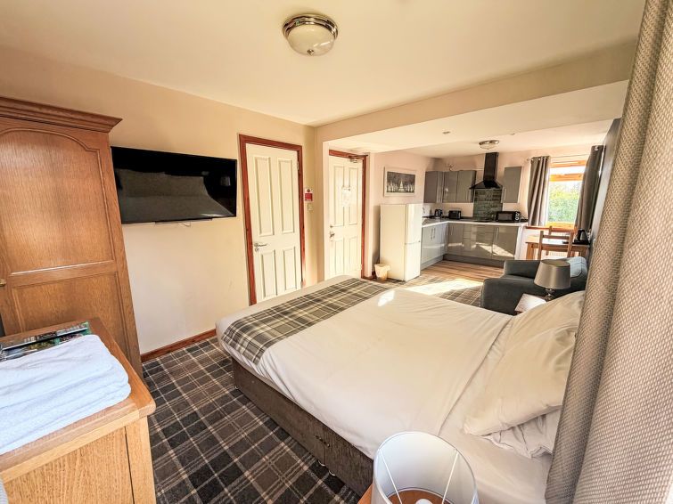 "Room 26", 1-room studio. Open living/sleeping room with 1 double bed and dining table. Small, open kitchen (2 hot plates, kettle, freezer). Shower/WC. Please note: non-smoking house.