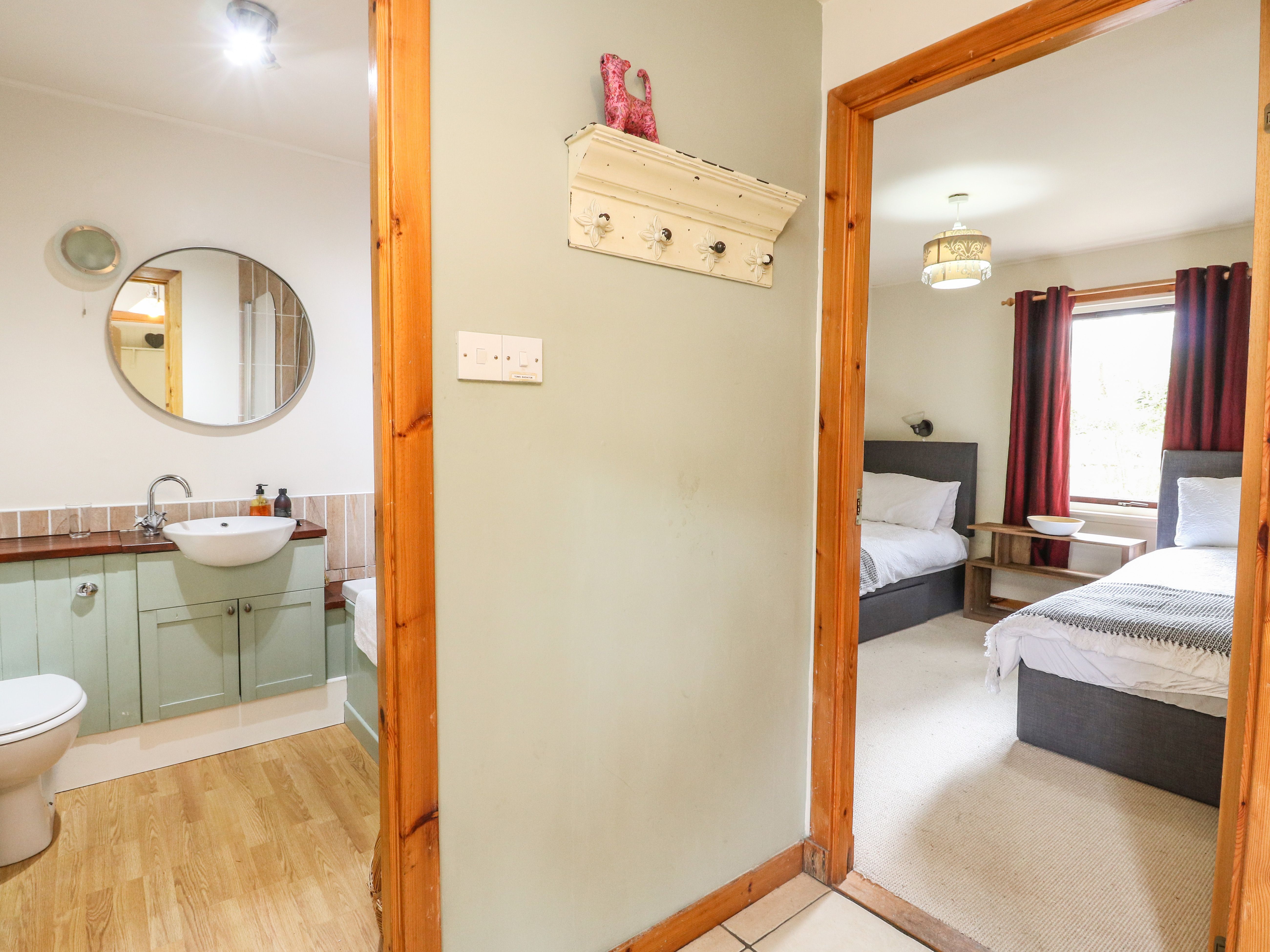 Accomodation Details Three bedrooms: 1 x double, 1 x twin, 1 x ground-floor twin. Ground-floor bathroom with bath, shower over, basin and WC. Shower room with shower, basin and WC. Hallway with Pantry. Open plan living area with kitchen, dining area and sitting area with log burning stone. NOTE: Table opens up to fit 6 guests