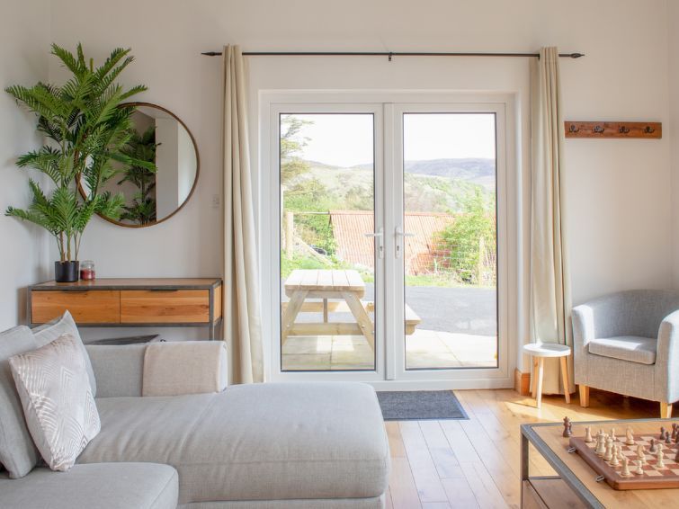 4-room cottage 99 m2. Modern and stylish furnishings: open living/dining room with dining table, satellite TV, CD-player and wood-burning stove. 1 double bedroom with 1 double bed and shower/WC. 2 double bedrooms, each room with 1 double bed. Kitchen (4 hot plates, oven, microwave) with dining table.