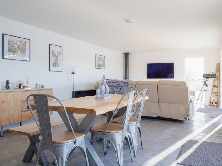 4-room cottage 186 m2. Modern and stylish furnishings: open living/dining room with dining table, satellite TV and wood-burning stove. Exit to the patio. 1 double bedroom with 1 double bed and digital TV. Open kitchen (4 ceramic glass hob hotplates, toaster, kettle, microwave, freezer).