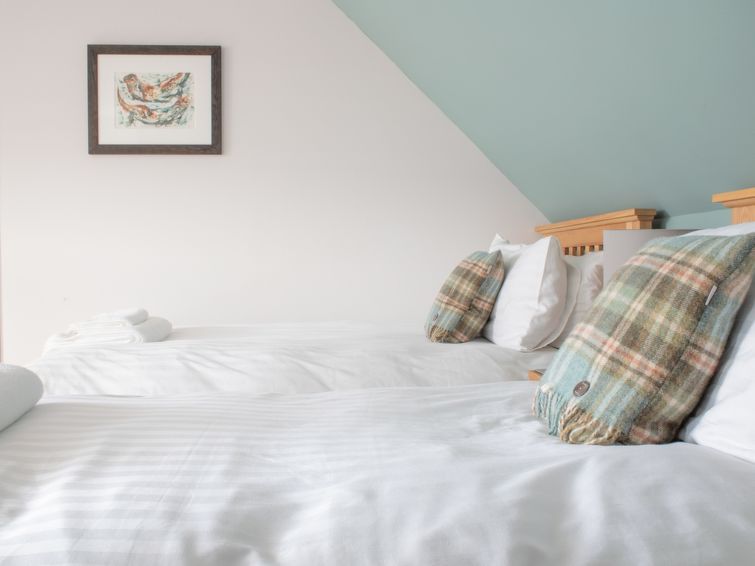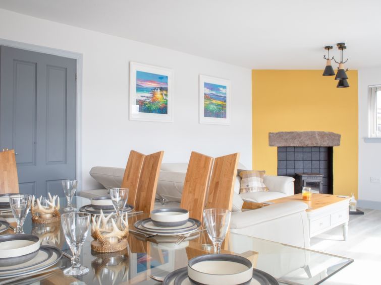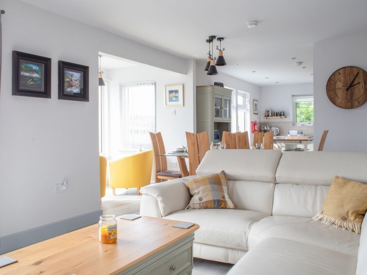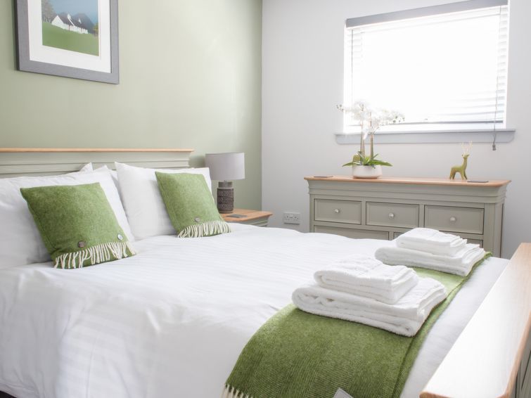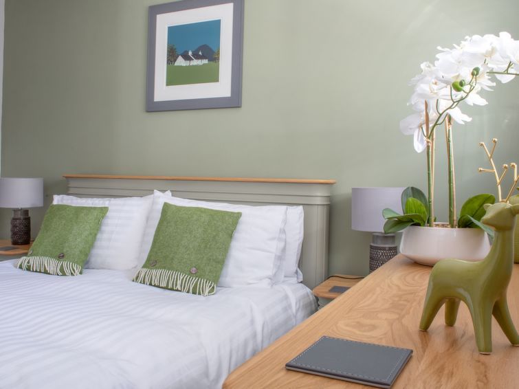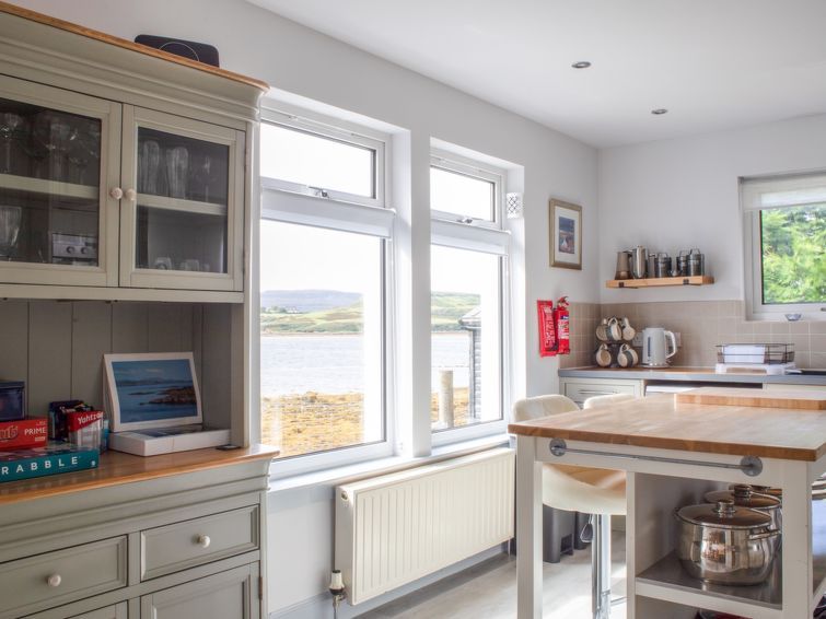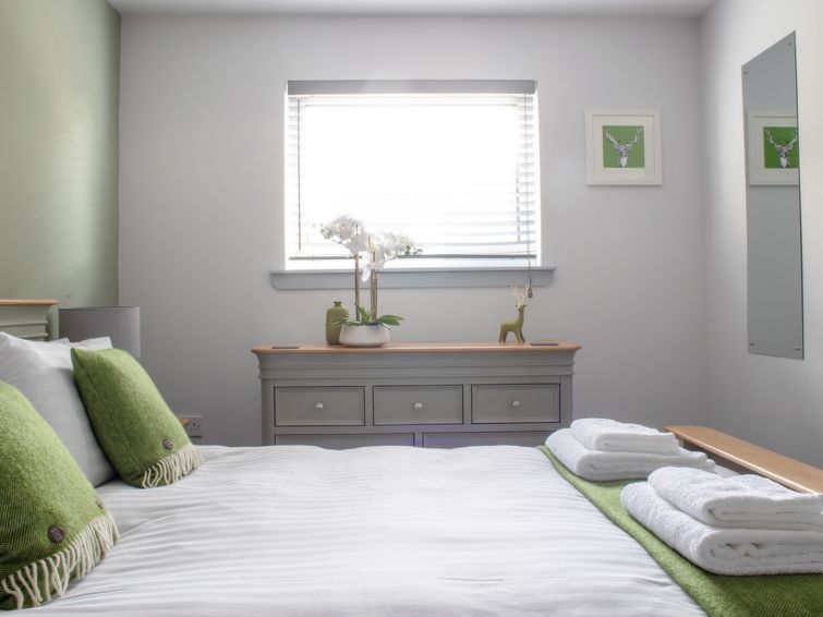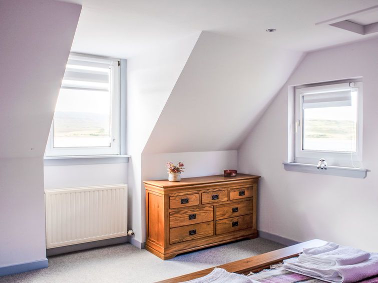 4-room house 100 m2. Tasteful furnishings: open living/dining room with panoramic window with dining table, digital TV and flat screen. 1 double bedroom with 1 double bed and shower/WC. Open kitchen (4 ceramic glass hob hotplates, toaster, kettle, microwave, freezer). Upper floor: 1 double bedroom with 1 double bed.