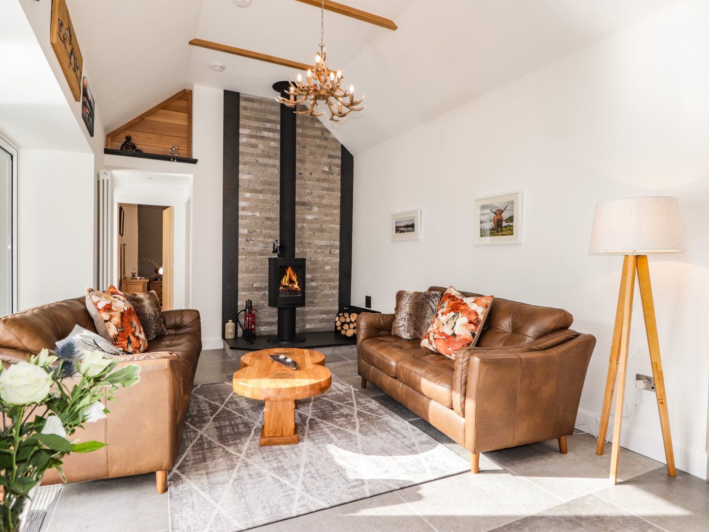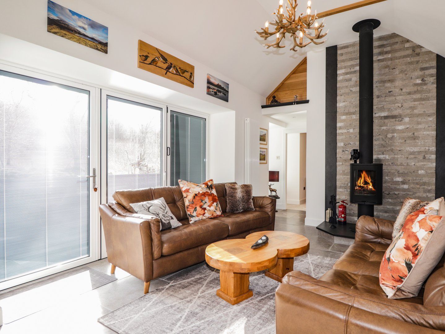 Amenities Oil central heating with woodburning stove. Electric range oven, gas hob, microwave, fridge/freezer, washing machine and dishwasher. x3 Smart TV with Freeview, WiFi. Fuel, power and starter pack for woodburning stove inc. in rent. Bed linen and towels inc. in rent. Highchair and travel cot available on request. Off-road parking for 3 cars. Enclosed rear garden with furniture. Decked area with hot tub. Sorry, no pets and no smoking. Shop and pub 2.5 miles. Note: There are two steps leading up to the king-size bedroom. Note: This property has a ramp access for those with limited mobility