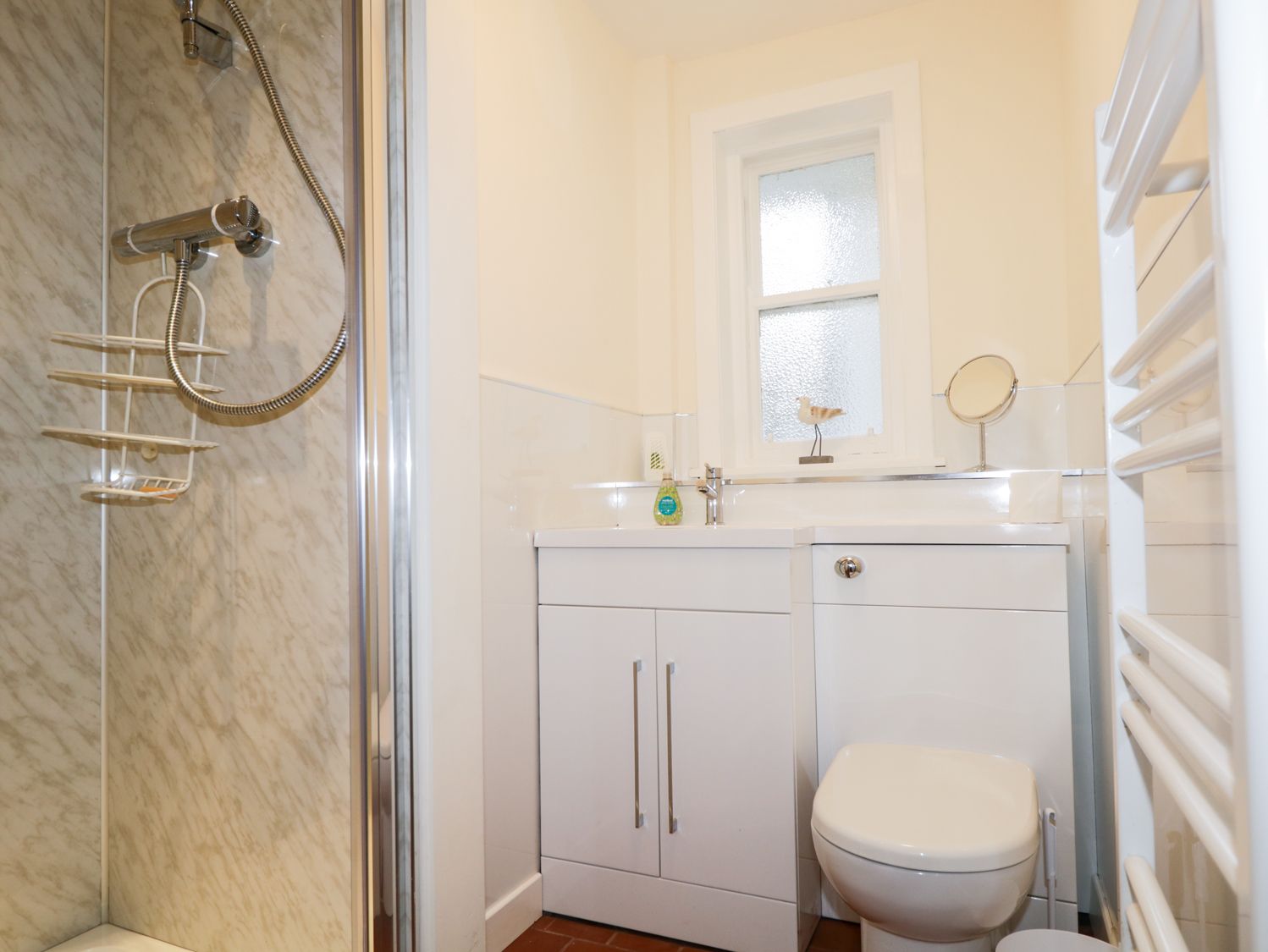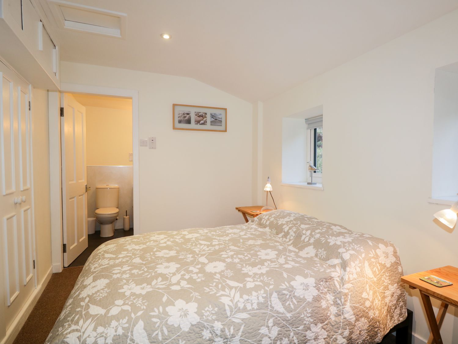 Over two floors. Three bedrooms: 2 x double with en-suite bath, shower basin and WC, 1 x twin. Shower room with walk-in shower, basin and WC. Kitchen. Living/dining room with woodburning stove. Garden room.