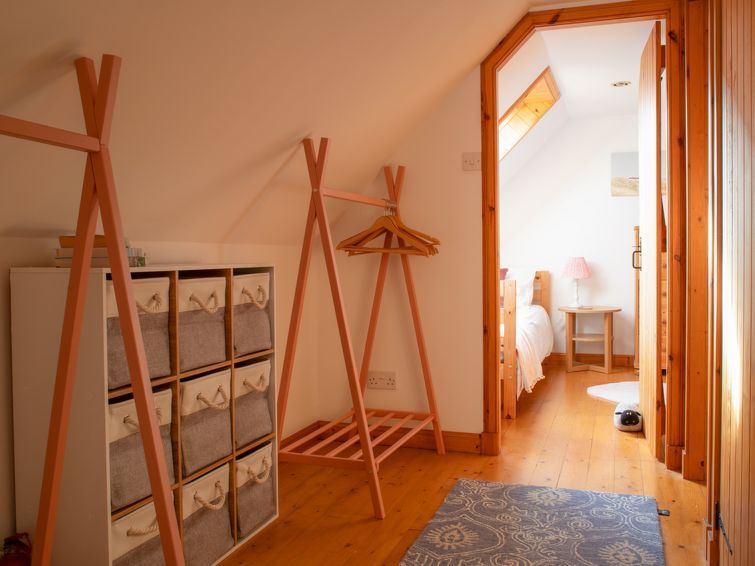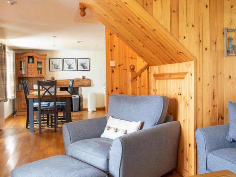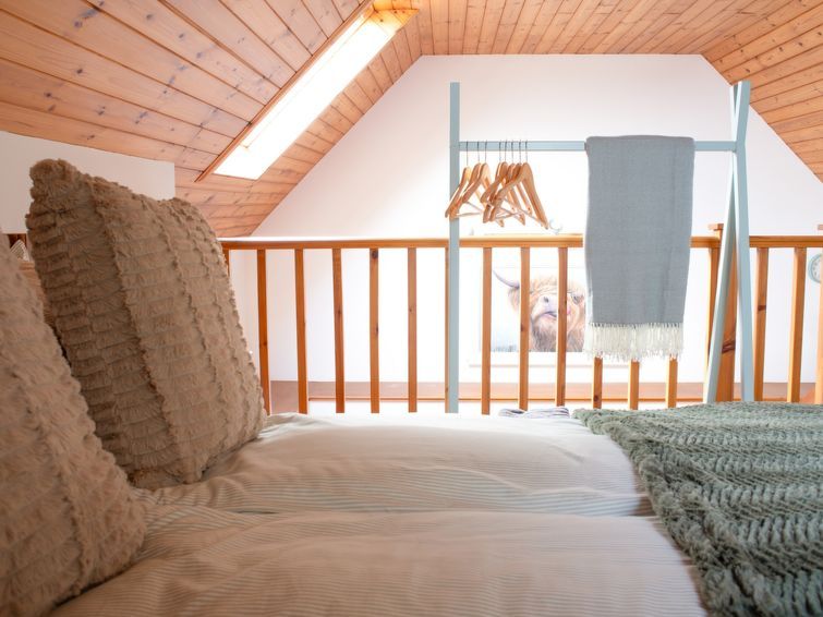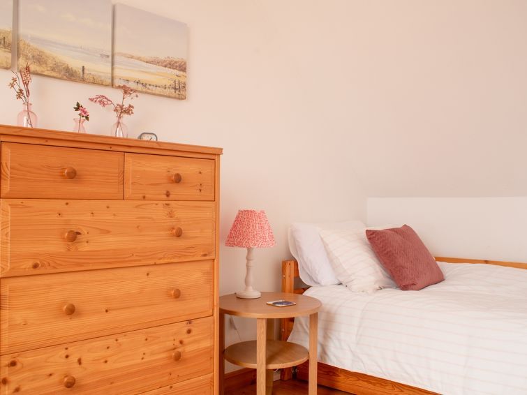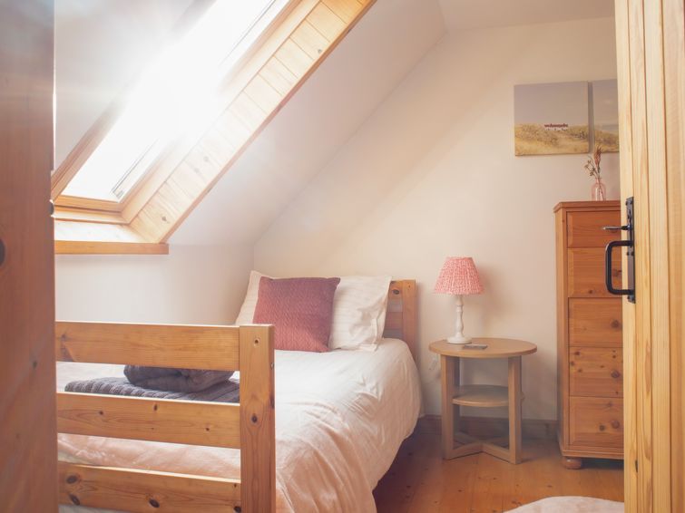 4-room cottage. Cosy furnishings: open lounge with digital TV and wood-burning stove. 1 open double bedroom with 1 double bed and shower/WC. Kitchen-/living room (oven, 4 ceramic glass hob hotplates, toaster, kettle, microwave, electric coffee machine) with dining table. Upper floor: 1 double bedroom with 1 double bed.