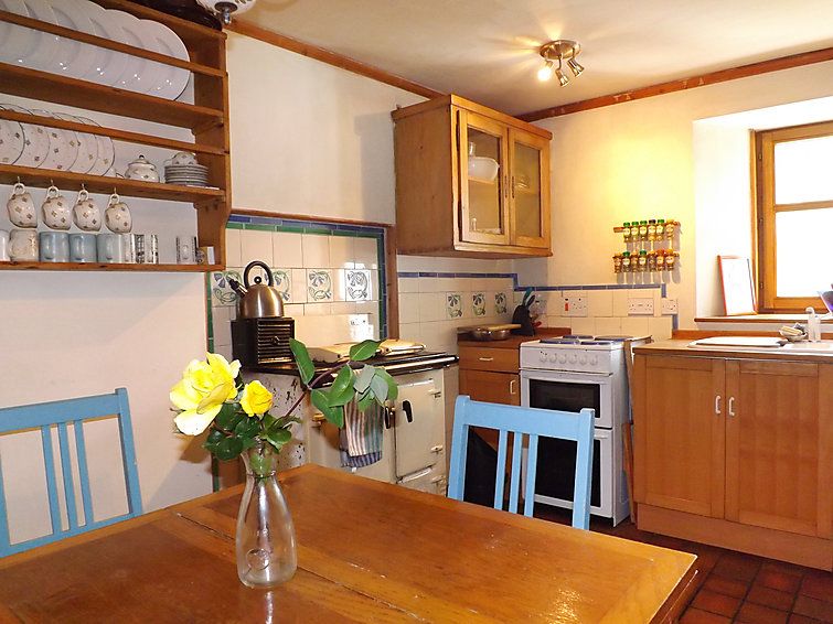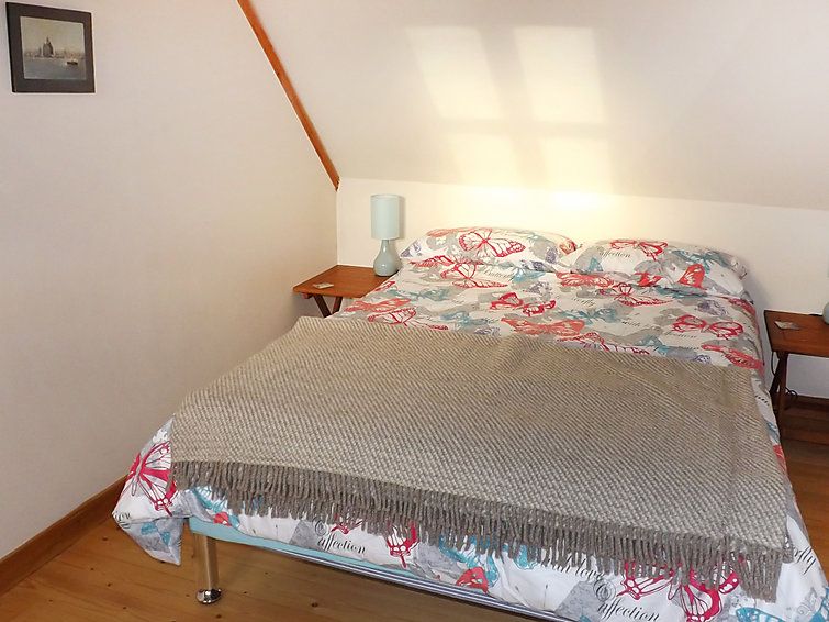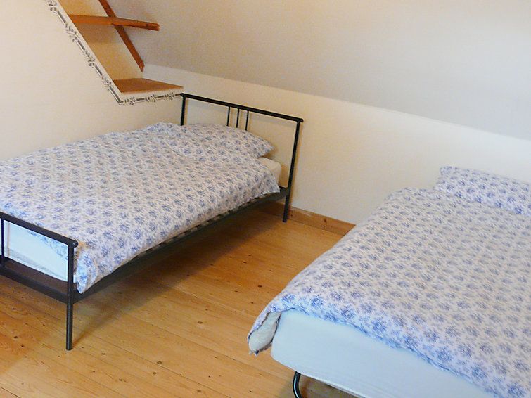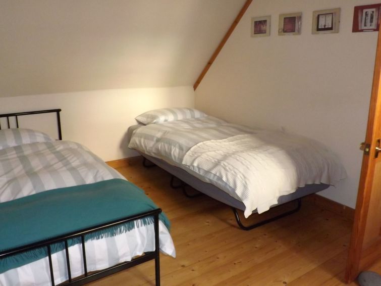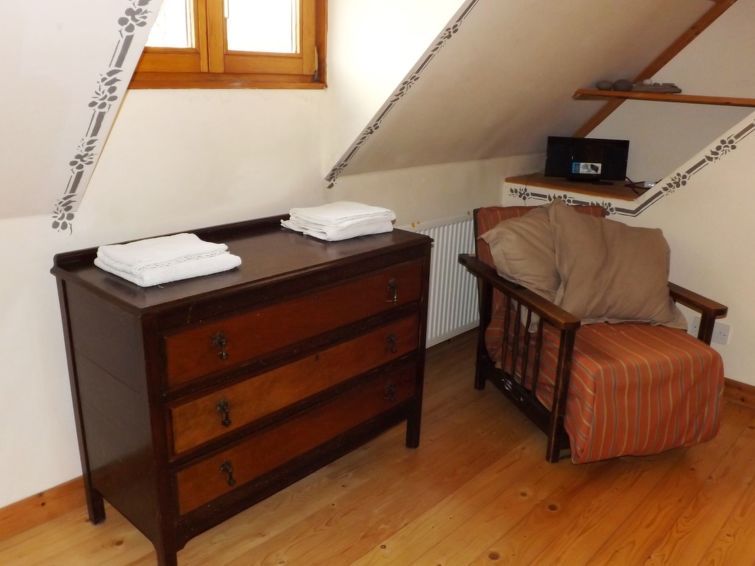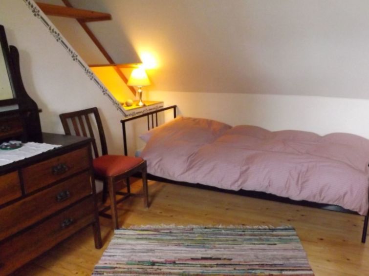 3-room house on 2 levels. Living room with open-hearth fireplace, satellite TV, CD-player and DVD. Kitchen (4 hot plates, oven) with dining table. Upper floor: 1 double bedroom with 1 double bed. 1 room with 2 beds. Bath/shower/WC. Heating. Beautiful view of the countryside. Facilities: washing machine.