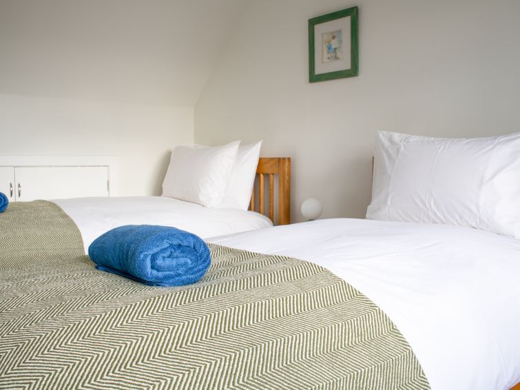 4-room cottage 121 m2. Comfortable and modern furnishings: open dining room with dining table. 1 room with 2 beds and shower/WC. Living room with digital TV and wood-burning stove. Large, open kitchen (4 ceramic glass hob hotplates, toaster, kettle, microwave, freezer). Exit to the patio.