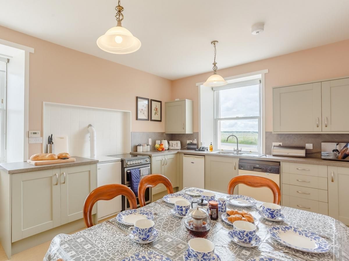 The house itself is a lovely building: a traditional Scottish structure that’s been lovingly renovated with a conservatory and rooms that really take advantage of its seaside location, letting the light and the views in through feature windows.