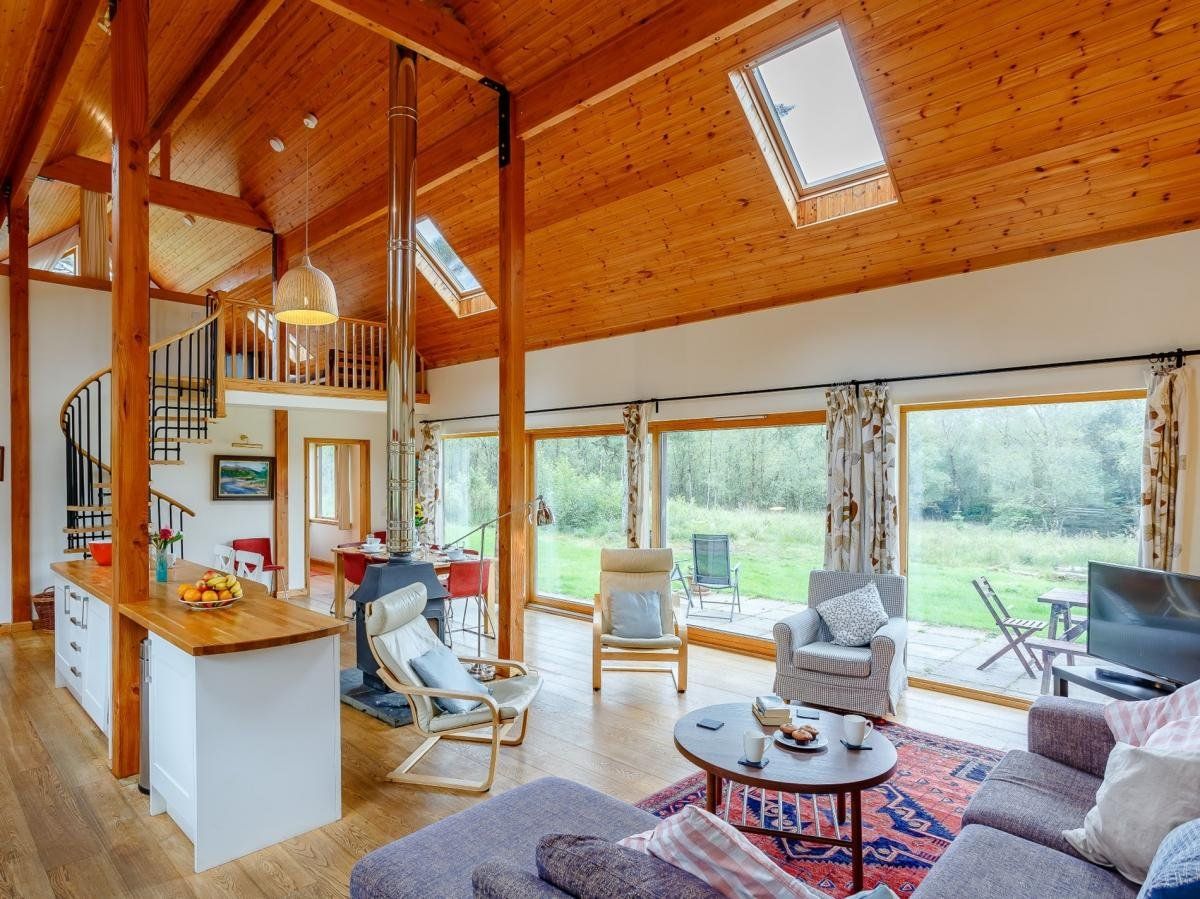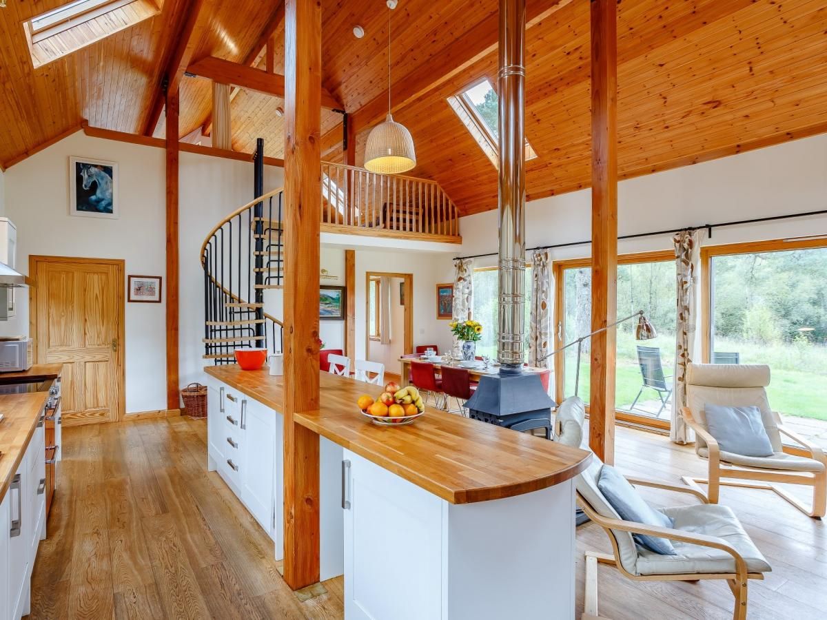 Nestled amid 10 acres of beautiful private woodland on a 500-acre working highland farm, this lodge is a walkers paradise, perfect for groups of friends and families and two canine chums.