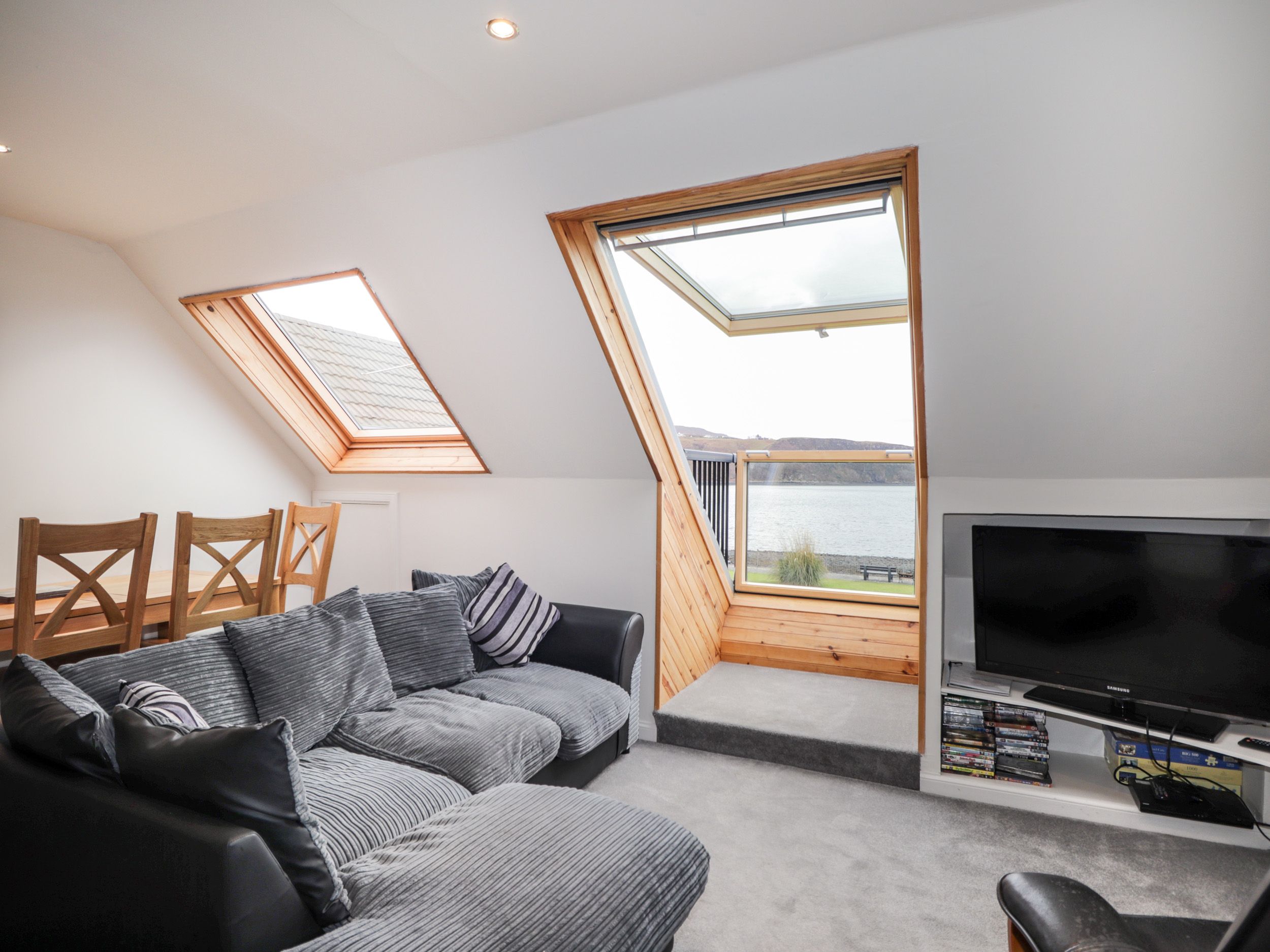 Holiday home Ceól na Mara is a lovely first floor apartment situated next to the owner's home, 1.5 miles from Uig on the Isle of Skye. This apartment sleeps six people in three bedrooms, consisting of two doubles, including one with an en-suite shower, and a twin, along with a shower room. The apartment also has an open plan living area with kitchen, dining area and sitting area with electric fire and balcony. Outside there's ample off road parking and a shared front lawned garden with seating areas. Ceól na Mara is a delightful Isle of Skye apartment.