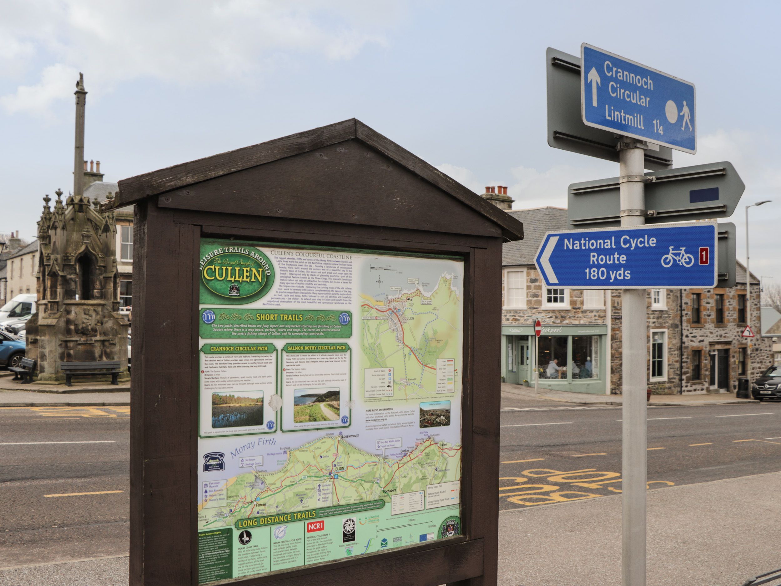 Cullen Bay, an inlet of the Moray Firth, is located in the Moray coastal town of Cullen, which was originally formed at the mouth of the Burn of Deskford. An 'inland' area from Seatown extends along one of Cullen's busiest thoroughfares and beneath a stunning viaduct, making up modern Cullen. A thick, creamy haddock soup called Cullen Skink is named after Cullen, despite the town's prosperity being based on textiles in the 18th-century. Elgin, Scotland's oldest city, is a short drive away from Cullen, which has a magnificent sandy beach and the famed Ice Cream Shop that many consider to be the best ice cream parlour in the country.