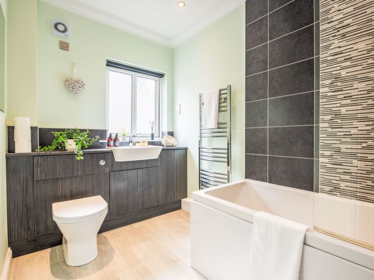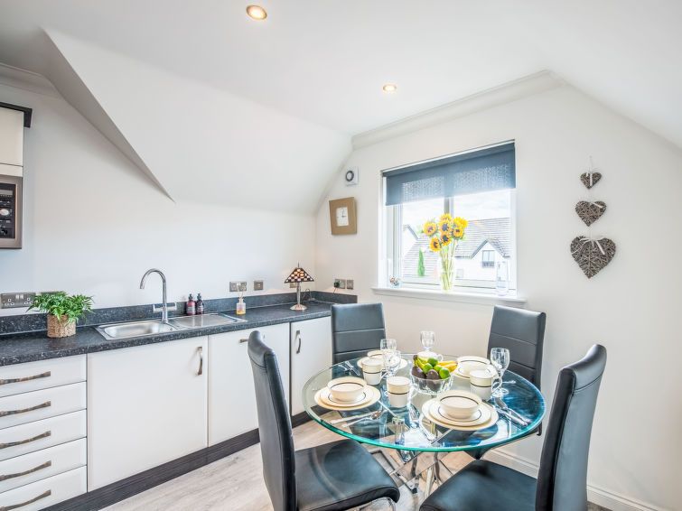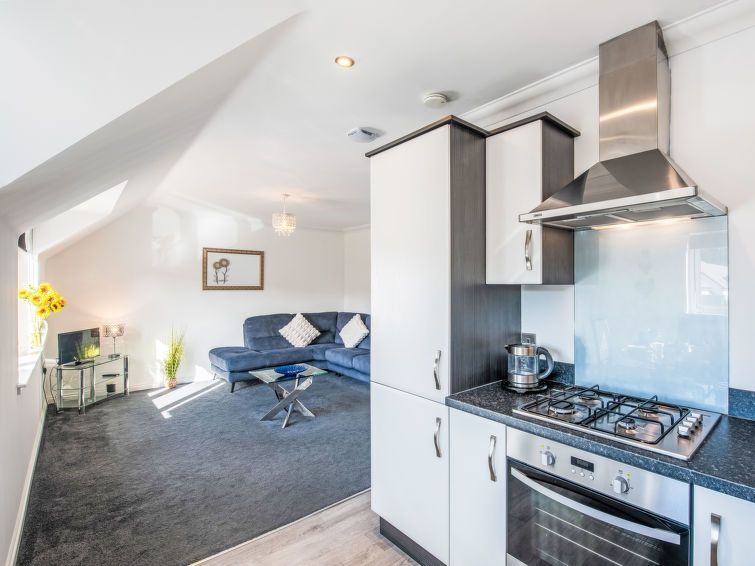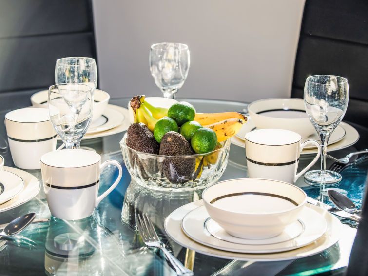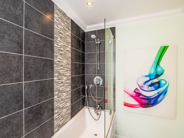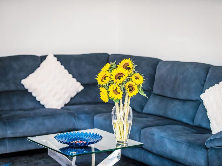 3-room apartment on the upper floor. Spacious and bright, modern and tasteful furnishings: open living room with TV (flat screen). 1 double bedroom with 1 double bed. 1 room with 2 beds. Open kitchen (oven, dishwasher, Gas stove, 4 gas rings, toaster, kettle, microwave, freezer, grill) with dining table.