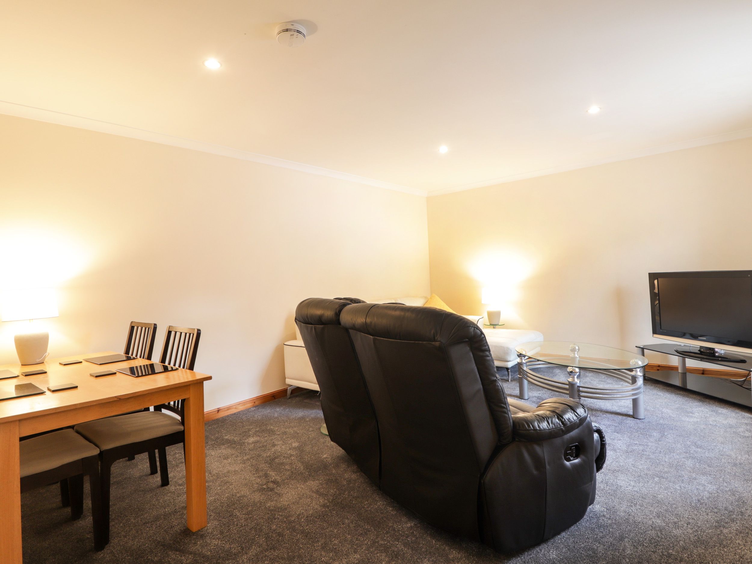 Accomodation Details Two bedrooms: 1 x king with TV, 1 x twin. Bathroom with bath, walk-in shower, basin, and WC. Kitchen/diner. Sitting room
