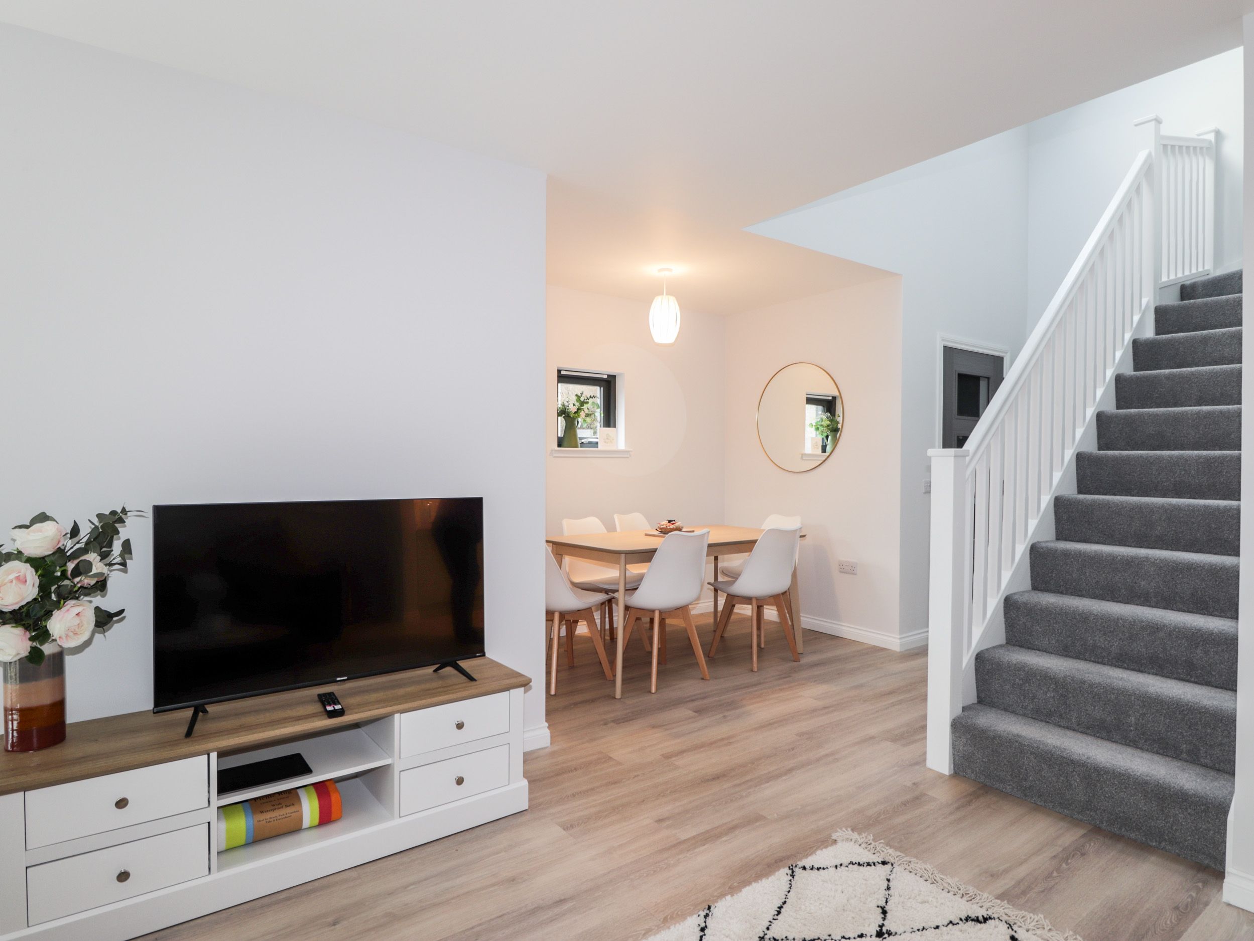 Amenities Underfloor heating. Electric oven, induction hob, combi microwave, fridge/freezer, washing machine, dishwasher. Smart TV, WiFi. Fuel and power inc. in rent. Bed linen and towels inc. in rent. Off-road parking for 2 cars. Enclosed rear garden. Two well-behaved pets welcome Please bring pet bowls and accessories, we like to ask our guests to discourage pets from sleeping on the bed... . Sorry, no smoking. Shop 0.4 miles, pub and beach 0.1 miles. Note: No child facilities