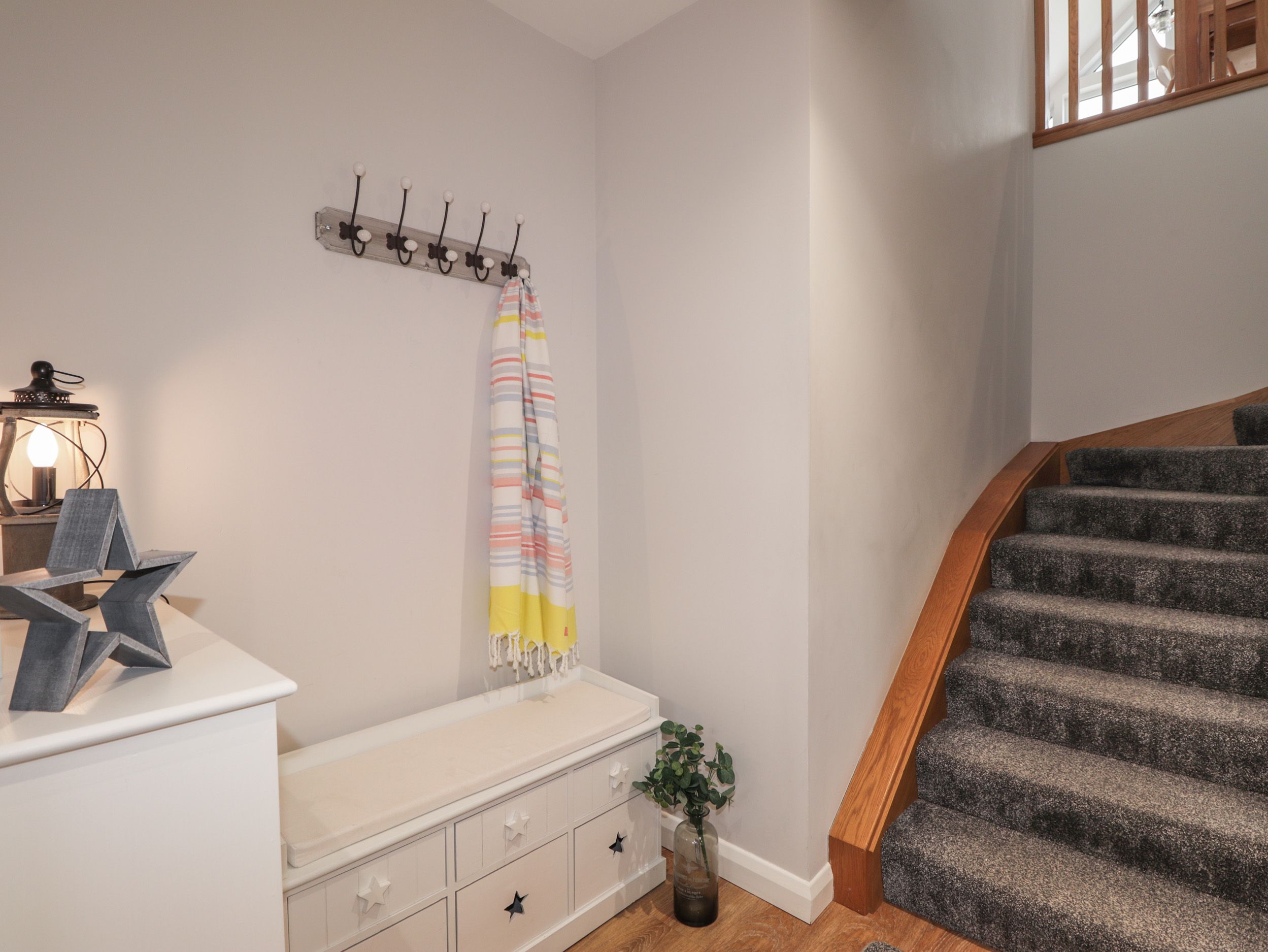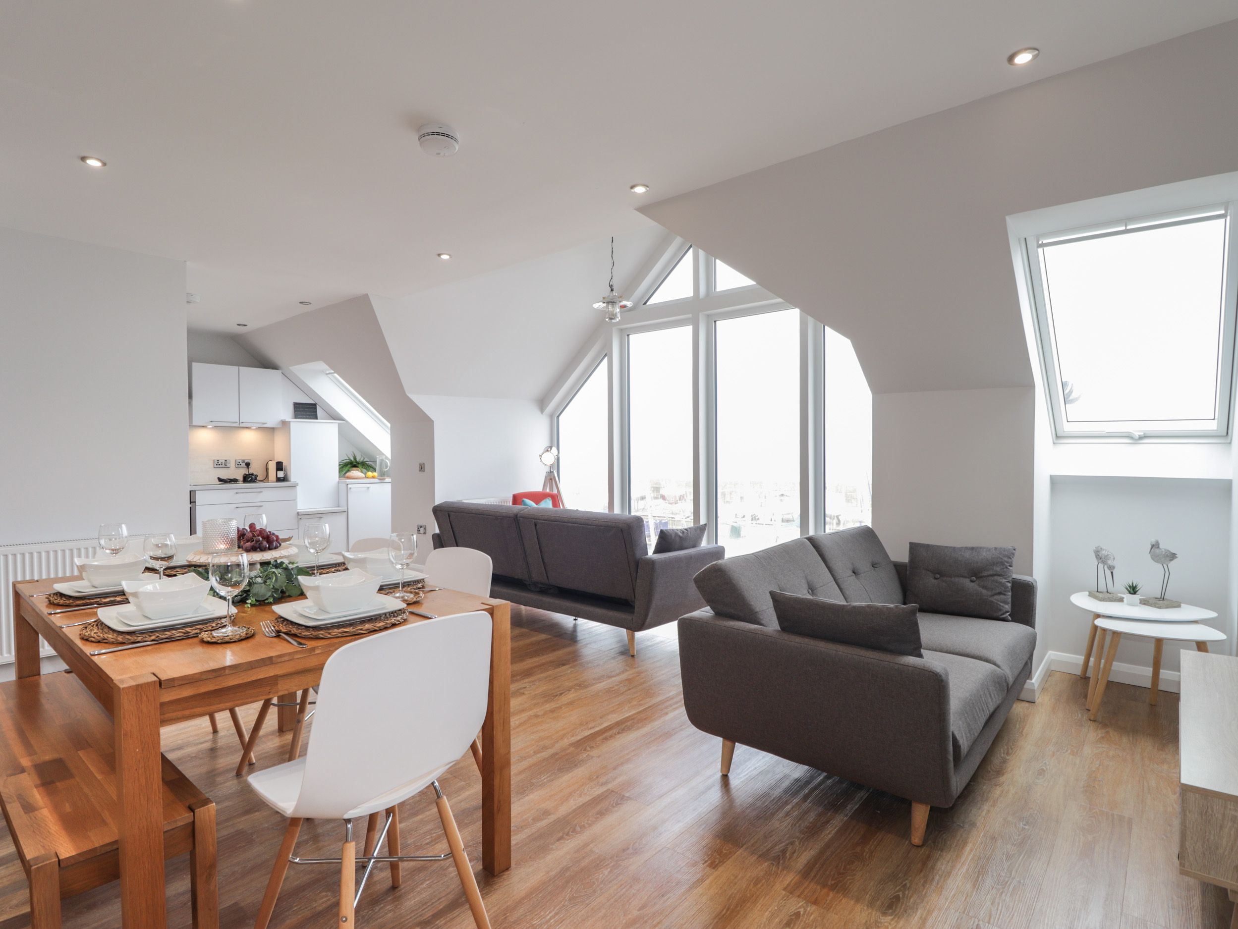 Accomodation Details Two bedrooms: 1 x ground-floor twin, 1 x first-floor double bedroom with Jack-and-Jill access to shower room with walk-in shower, basin, heated towel rail and WC. First-floor open-plan living space with kitchen, dining area and sitting area