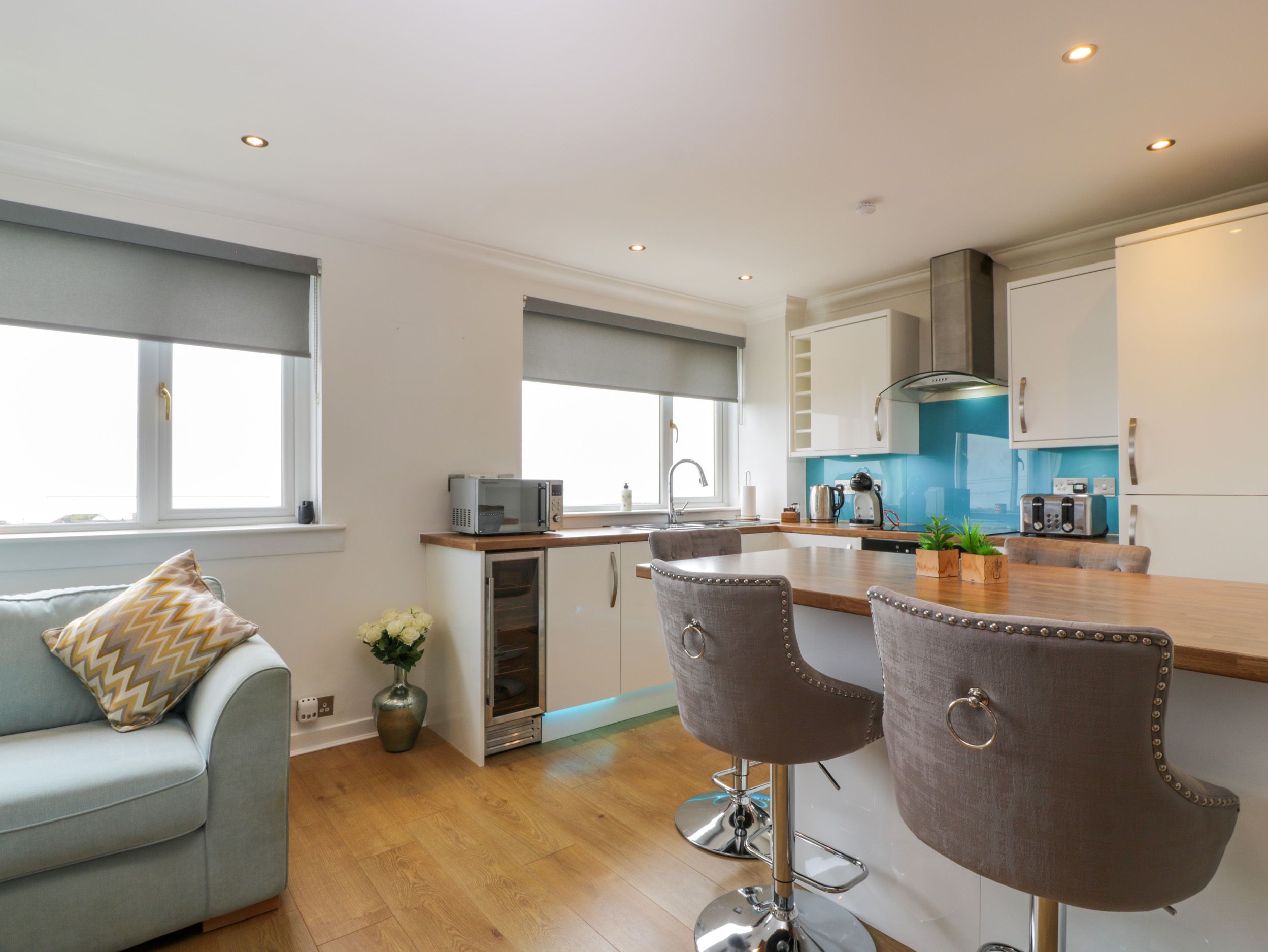 Holiday home The living areas in this first-floor apartment consist of an open-plan living space with kitchen equipped with electric oven and hob, microwave, fridge/freezer, washer/dryer, breakfast bar for four and sitting area with Smart TV. The bedrooms consist of a double and a king size serviced by a bathroom. Outside there is residential parking available along with roadside parking and a shared rear patio. Within 0.4 miles there is a shop, 0.6 miles a pub and 0.5 miles a beach. Two well-behaved dogs welcome, but sorry, no smoking. WiFi, fuel, power, bed linen and towels are all included in the price. Explore all Ayrshire has to offer at 19B Seafield Court. Note: Children are welcome but no travel cot or highchair is provided. Please kindly be respectful to the neighbours and keep the noise to the minimum. Please note: This property has it's SSTLL; NA-00461-F. Note: ramp access available at the property, for loading and unloading purposes only