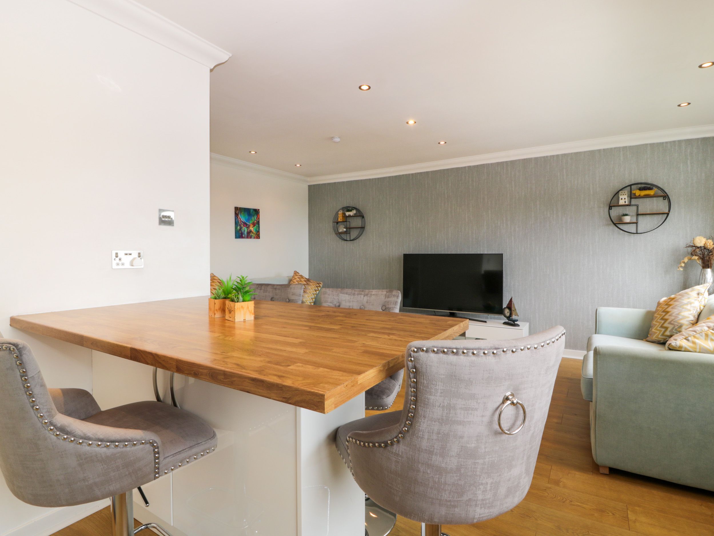 Accomodation Details First-floor apartment. Two bedrooms: 1 x king size, 1 x double. Bathroom with bath, shower over, basin and WC. Open-plan living space with kitchen, dining area and sitting area