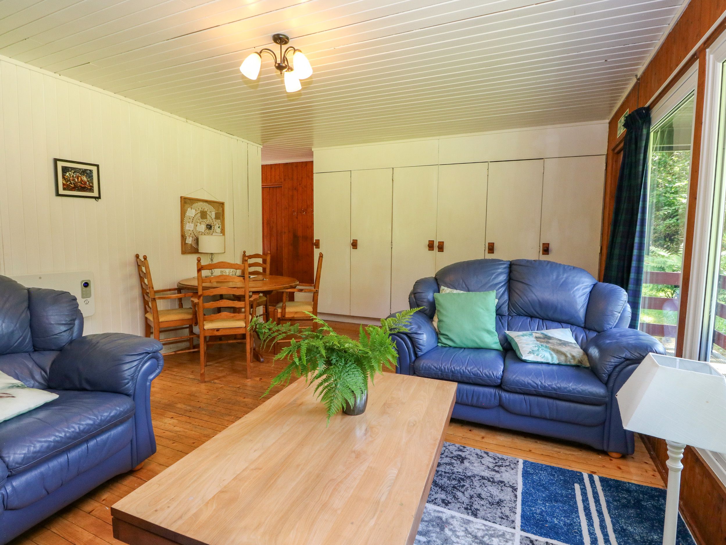 Accomodation Details Single-storey. Two bedrooms: 1 x double, 1 x twin. Bathroom with bath, shower over, basin and WC. Open-plan living space with kitchen, dining area and sitting area with electric fire